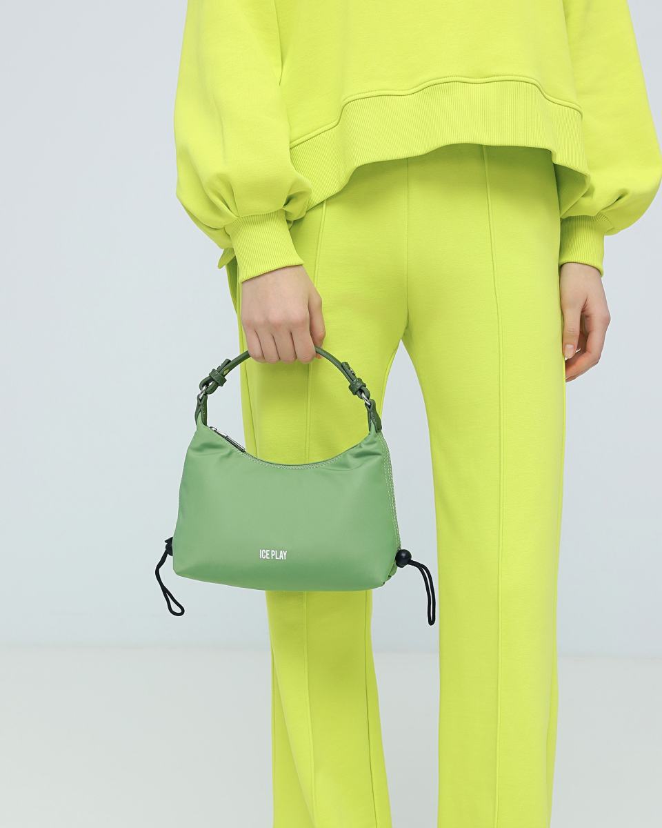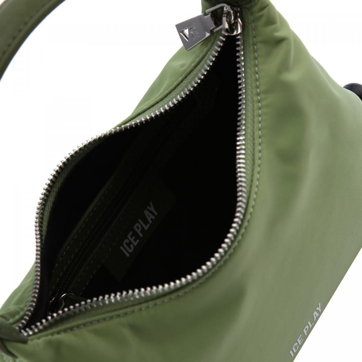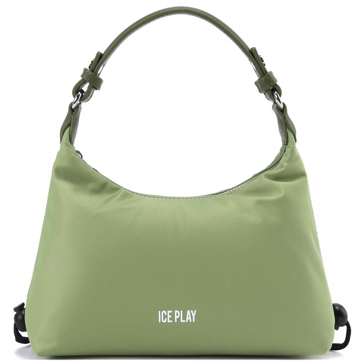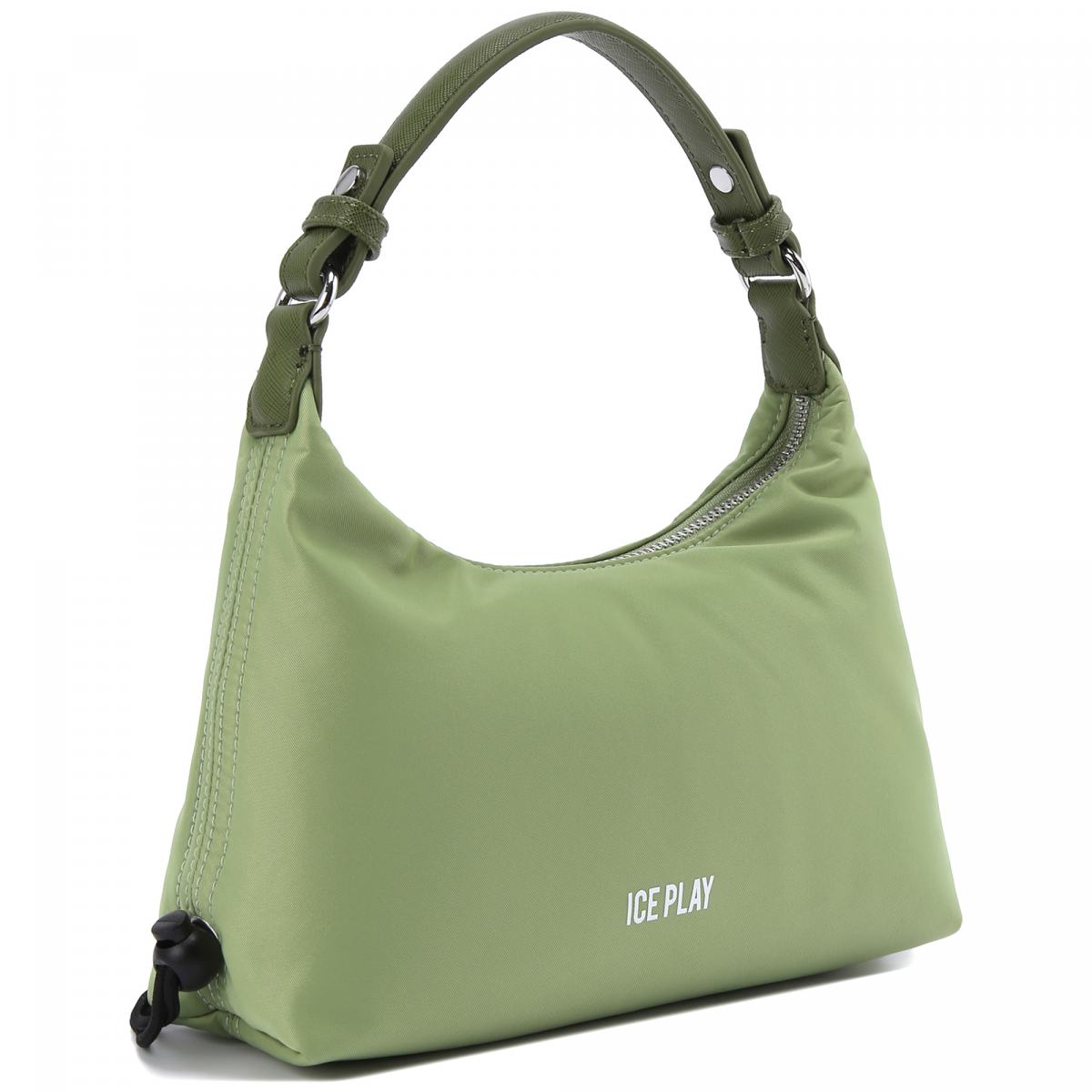 Сумка из текстильной ткани в зеленом цвете от Ice Play. Сумка в базовом дизайне универсальна и подойдет к любому образу и ситуации. Материал плотная текстильная ткань, ручка выполнена из кожи. Габариты сумки можно регулировать, используя скрытые шнурки-кулиски по бокам. Сумка застёгивается на молнию, внутри текстильная подкладка и карман на молнии для мелочей.