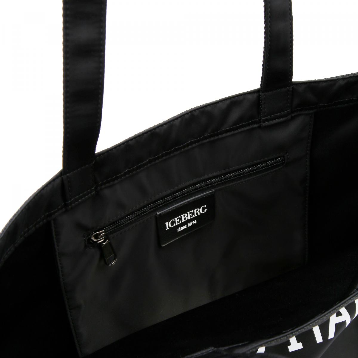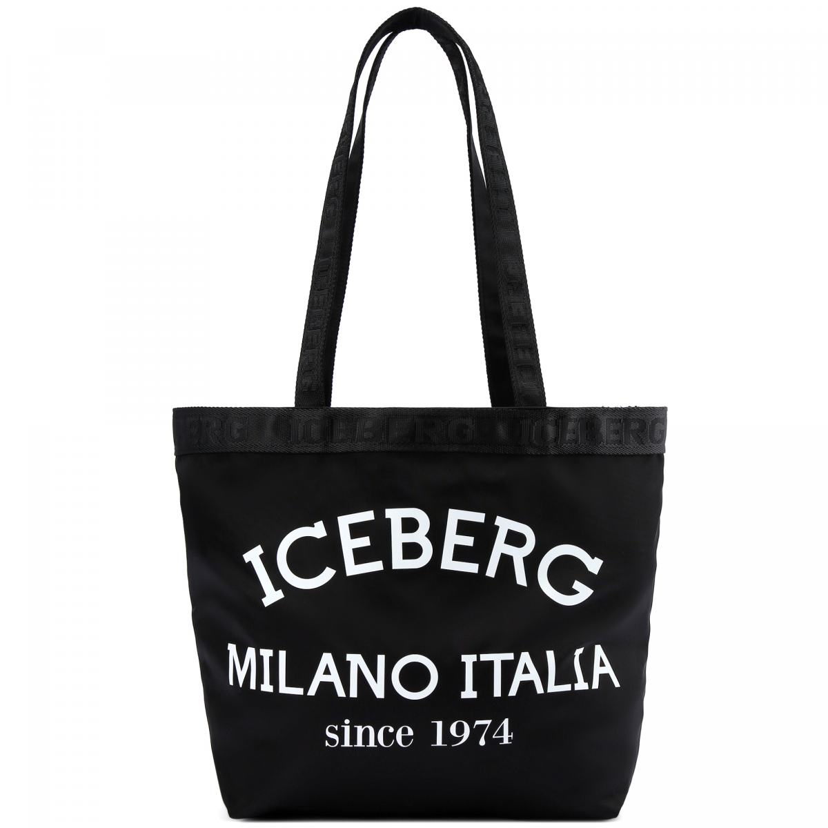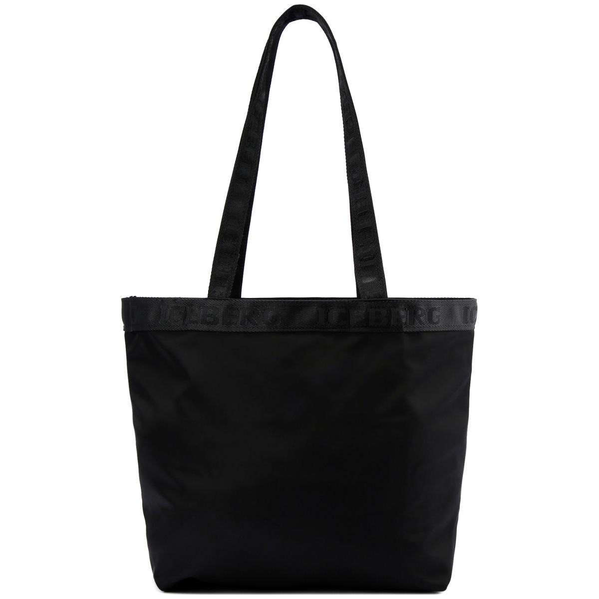 Сумка-шоппер из текстильной ткани от Iceberg. Практичная и вместительная сумка станет вашим верным спутником для похода за покупками или в путешествиях. Сумка выполнена из черного текстиля и украшена крупным принтом в виде фирменного логотипа. Длинные ручки позволят носить её на плече. Внутри небольшой карман на молнии.
