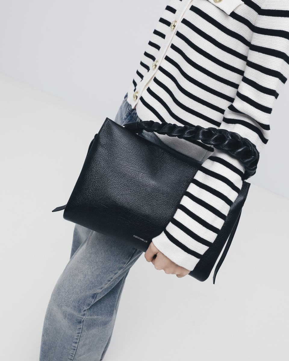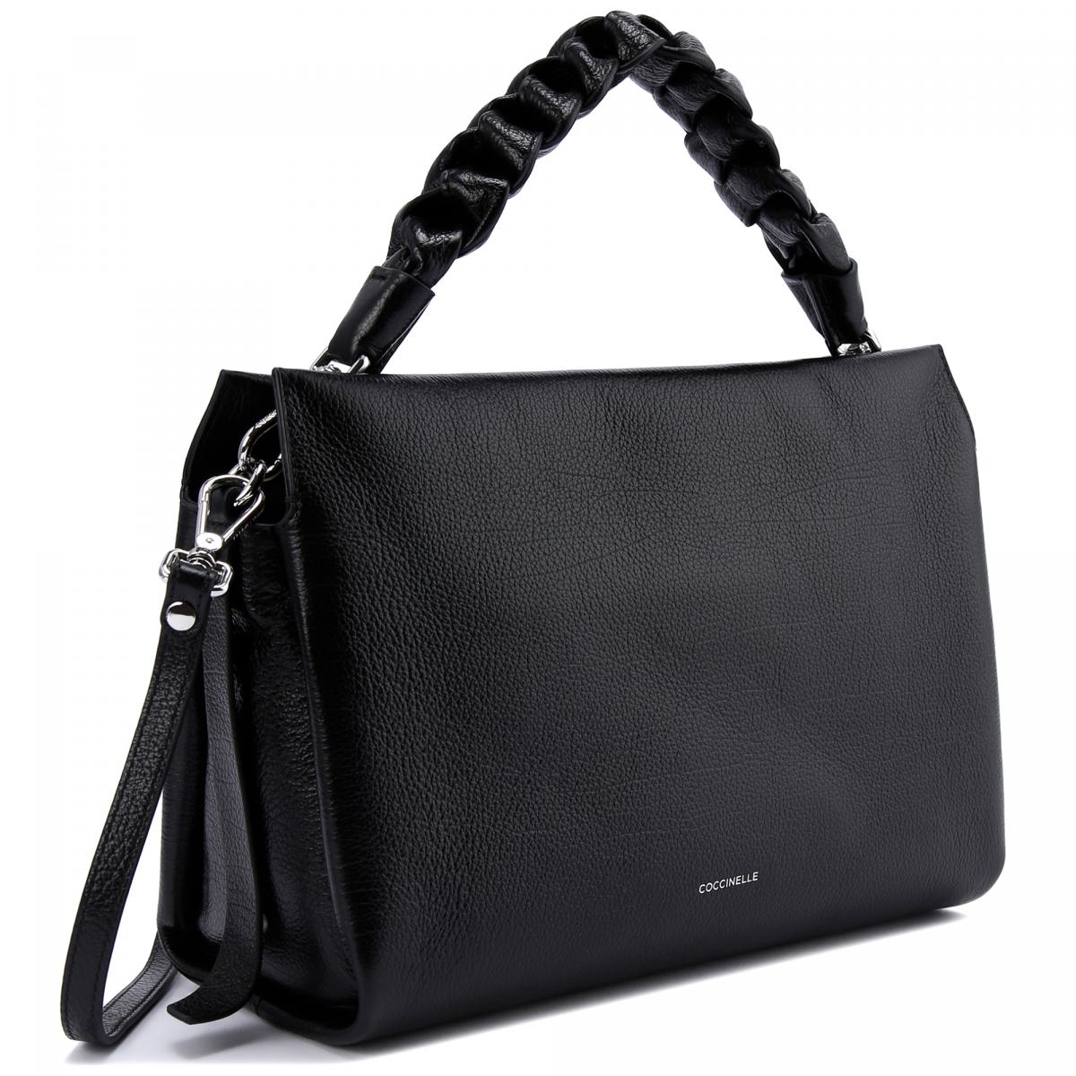 Сумка из натуральной кожи в черном цвете от Coccinelle. Boheme - это коллекция сумок из мягкой двусторонней кожи с плетёной ручкой, наделяющей их женственностью и современностью. Эта удобная и способная вместить в себя все необходимое сумка отлично подойдёт для самых динамичных женщин. Данная модель изготовлена из кожи, обработанной на специальном оборудовании, после чего прошедшей процесс дубления для получения особенной мягкости. У этого особенного типа кожи обрабатываются пигментами обе поверхности для получения двусторонней отделки. Она является прочной и пригодной для ежедневного использования. Сумка застёгивается на молнию, внутри текстильная подкладка и карман ан молнии.