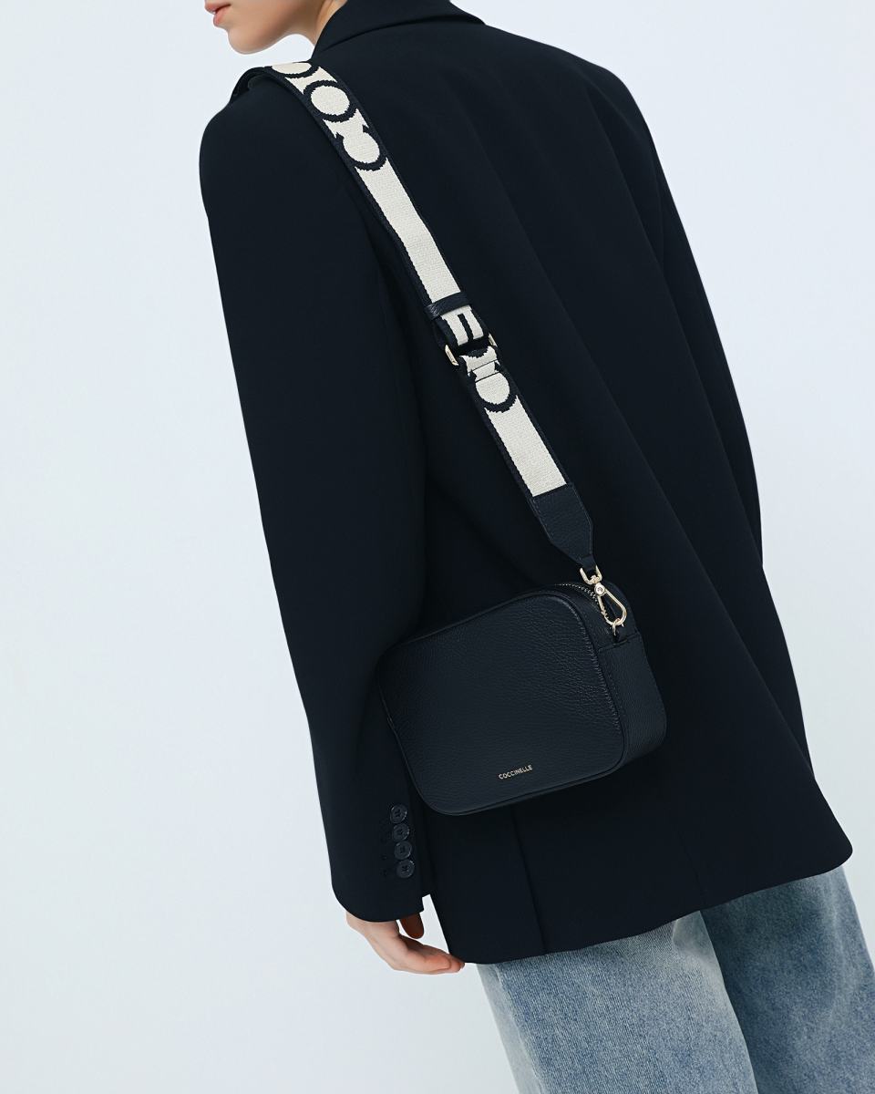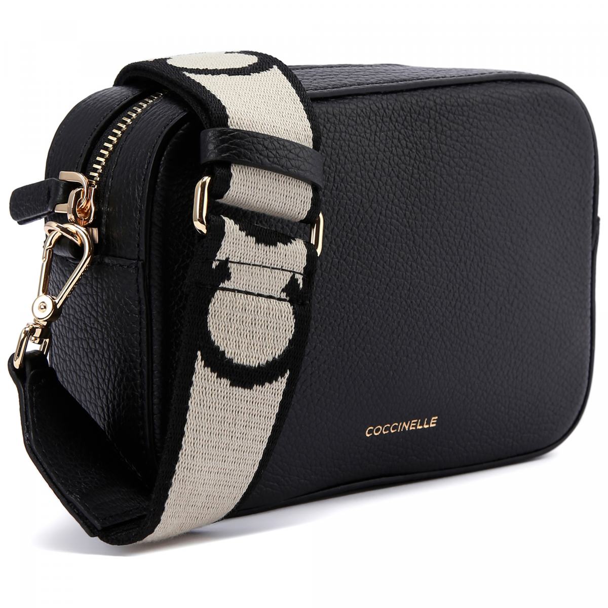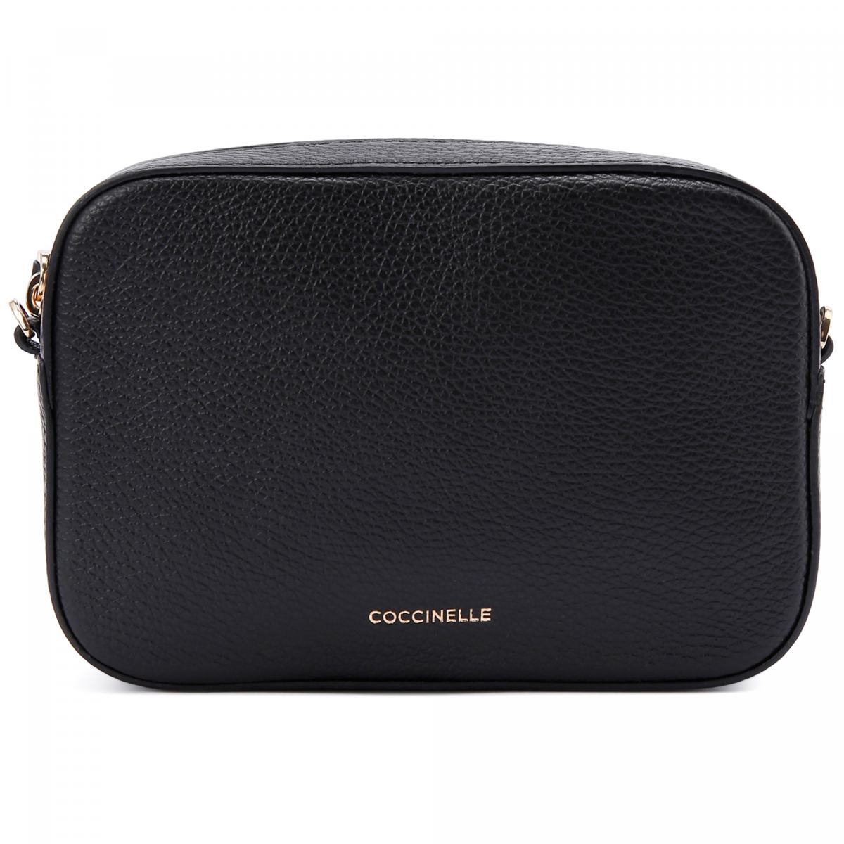 Сумка из натуральной черной кожи от Coccinelle. Изготовленная из кожи с деталями в стиле ретро, сумка для фотоаппарата Tebe придаст вашему повседневному образу более непринужденный вид, в том числе благодаря удобному тканевому ремню через плечо. Эта модель изготовлена из кожи, обработанной на специальном оборудовании, а затем отжатой, чтобы сохранить ее мягкость. Это очень прочная кожа, которая легко поддается чистке и идеально подходит для ежедневного использования. Сумка закрывается на молнию, внутри текстильная подкладка.