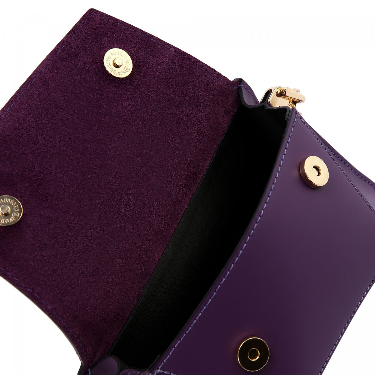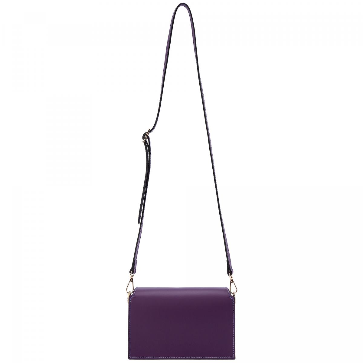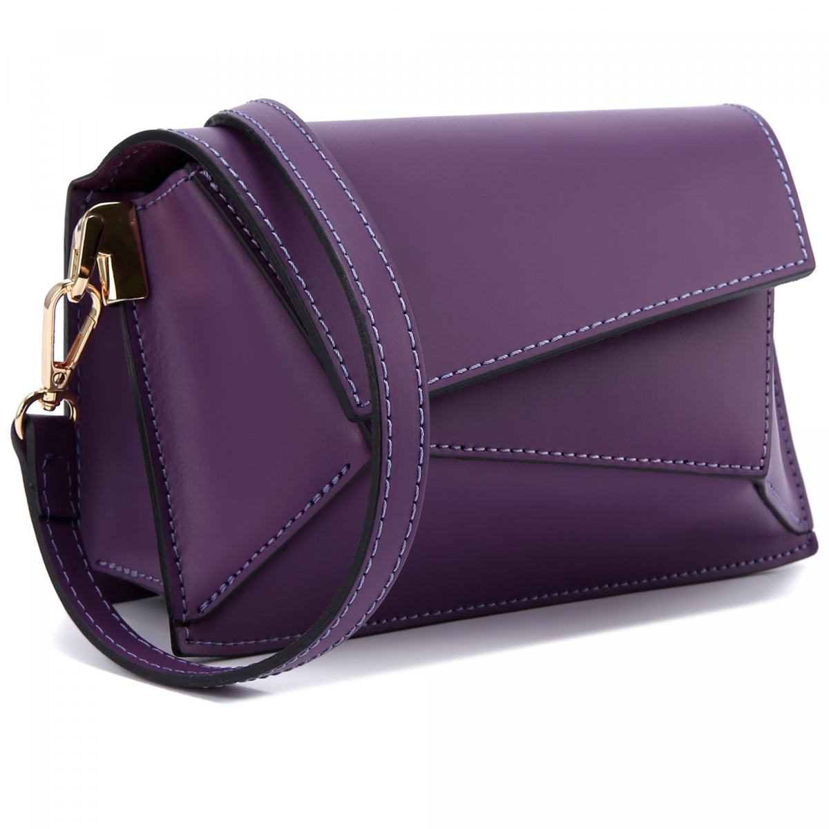 Сумка из натуральной кожи в фиолетовом цвете от Principe di Bologna. Эта небольшая сумка идеально подойдёт к строгим нарядам благодаря своему сдержанному дизайну и геометричный формам. Сумка дополнена ремнём на плечо, который крепится на карабинах. Сумка закрывается на магнитные замки, внутри подкладка из натуральной кожи и внутренний карман на молнии.