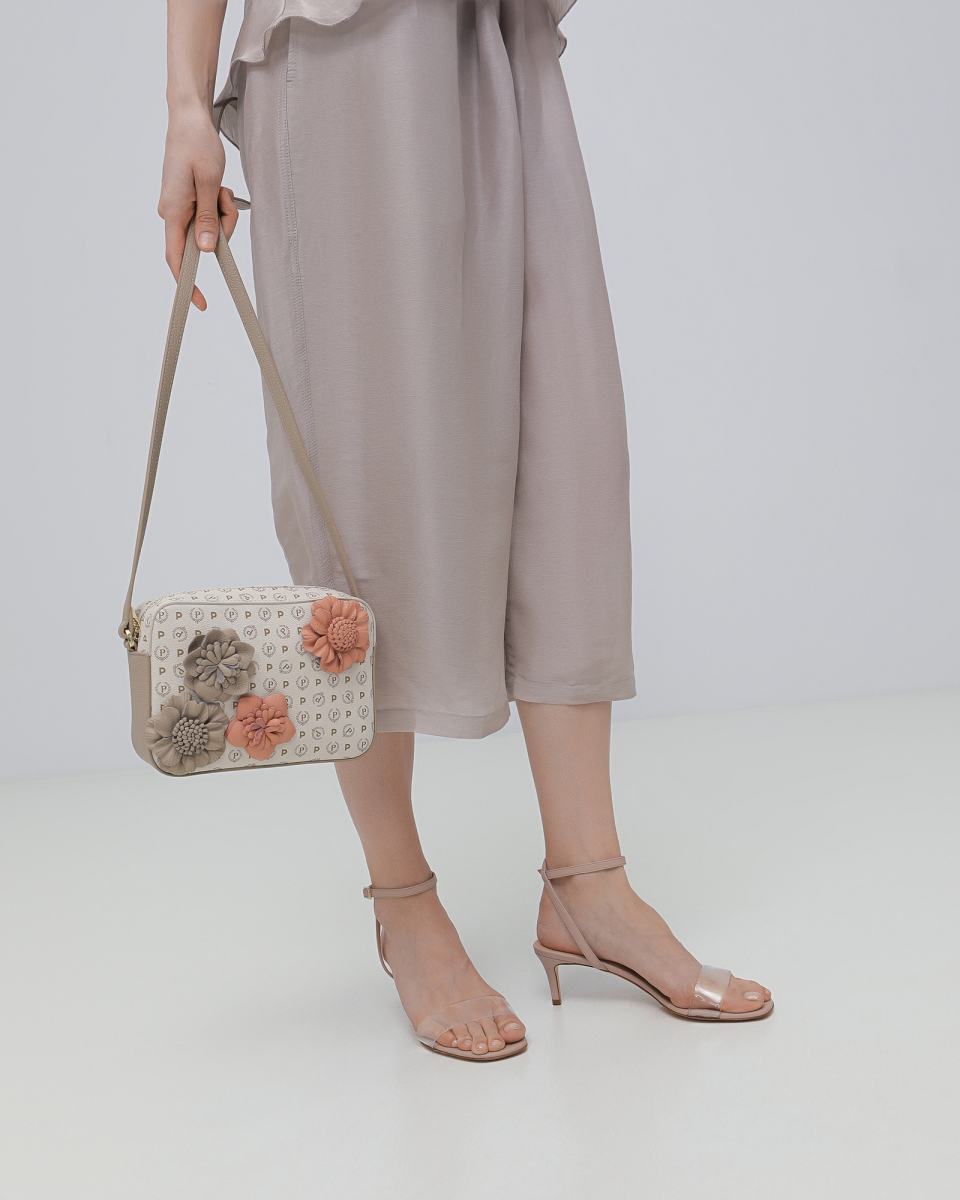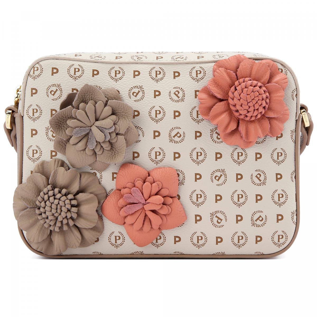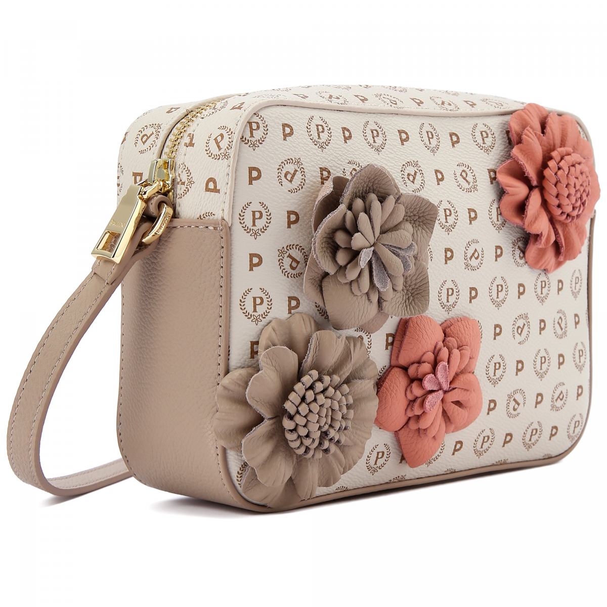Сумка из искусственной кожи в бежевом цвете от Pollini. Сумка с эффектным и ярким дизайном: легендарный узор Heritage дополнен объемной аппликацией в виде цветов в пастельных оттенках. Сумка на ремне через плечо закрывается на молнию, внутри текстильная подкладка. Аксессуар, способный украсить любой образ!