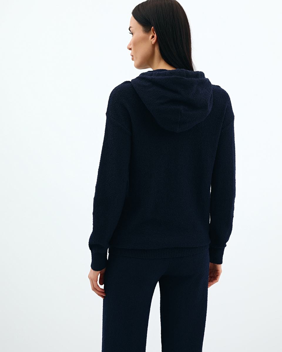 Толстовка с капюшоном в тёмно-синем цвете от Principe di Bologna. Толстовка в спортивном стиле будут уместны как в повседневном, так и в спортивном образе. Капюшон со шнурком-кулиской, передние карманы, эластичные манжеты и подол. Модель выполнена из тонкого трикотажа, в составе которого 68% хлопка и 32% полиамида.