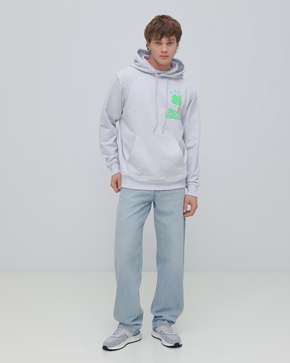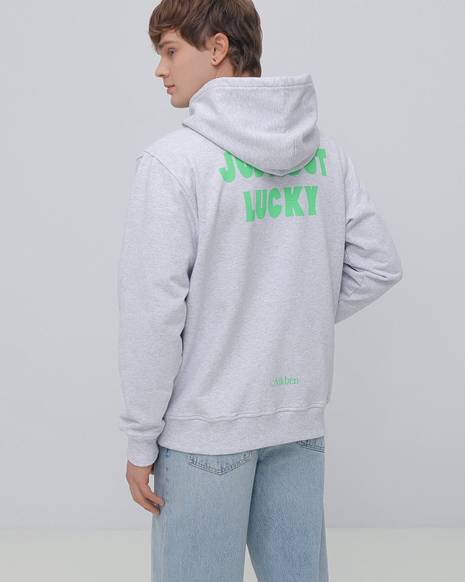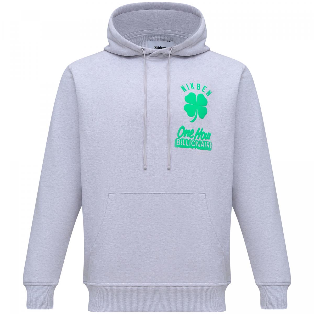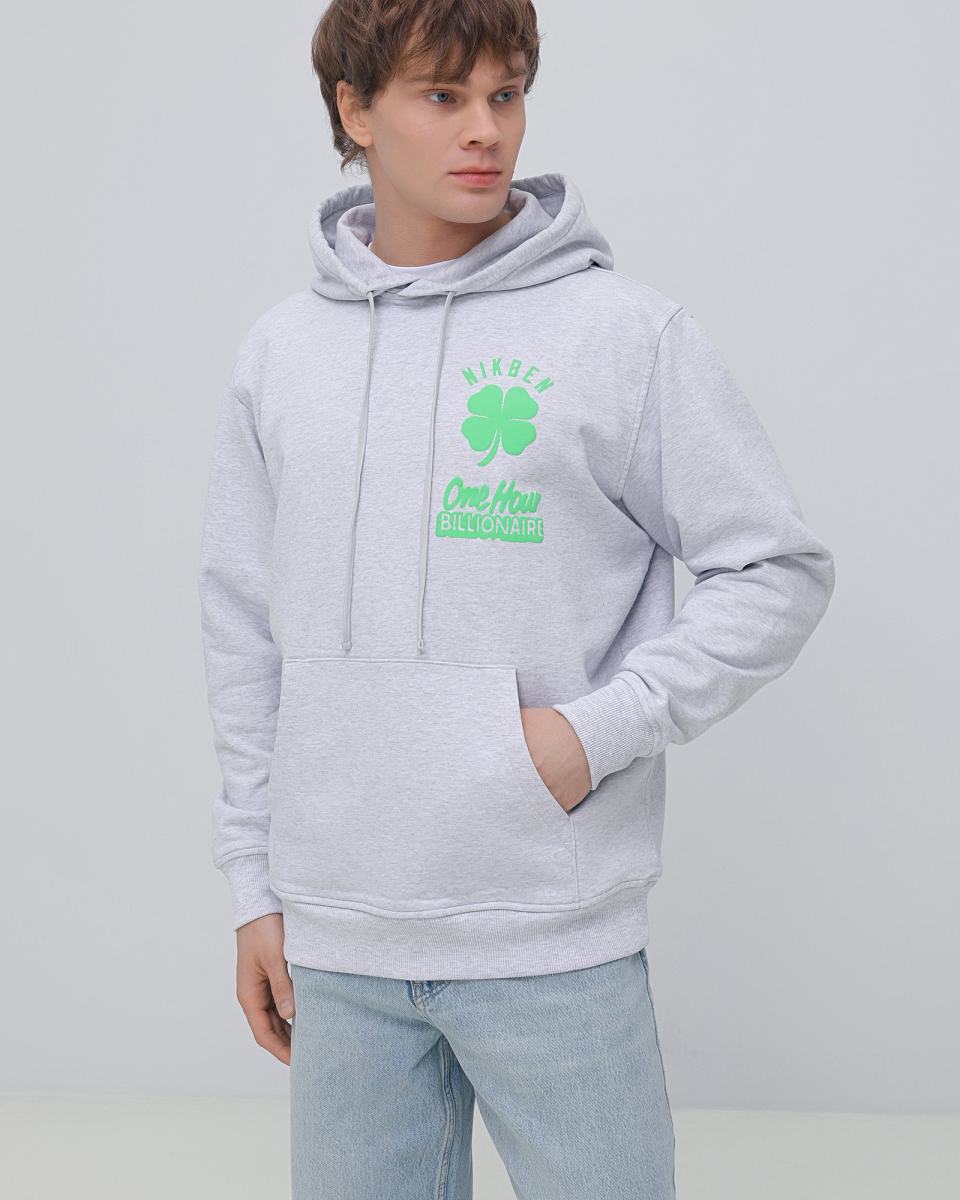 Светло-серая толстовка Nikben впишется в любой гардероб. Модель выполнена из трикотажа, в составе которого 100% хлопка. Толстовка дополнена капюшоном с завязками и карманом. Завершает дизайн спереди изображение клевера и названия бренда в зеленом цвете, на спине — крупная надпись. Такую модель легко сочетать с любыми низами — шортами, джинсами и спортивными брюками. Размер на модели: M (рост 188 см, грудь 93 см, талия 73 см, бедра 92 см)