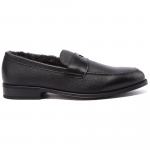 Мокасины из чёрной зернистой кожи от Doucal’s. Городская модель в стиле casual прекрасно подойдёт для холодных дней. Верх выполнен из зернистой натуральной кожи. Подкладка и стелька выполнены из натурального меха. Дизайн завершает гибкая резиновая подошва с небольшим каблуком. Модель подойдёт как для формальных офисных образов, так и для более расслабленного городского стиля.