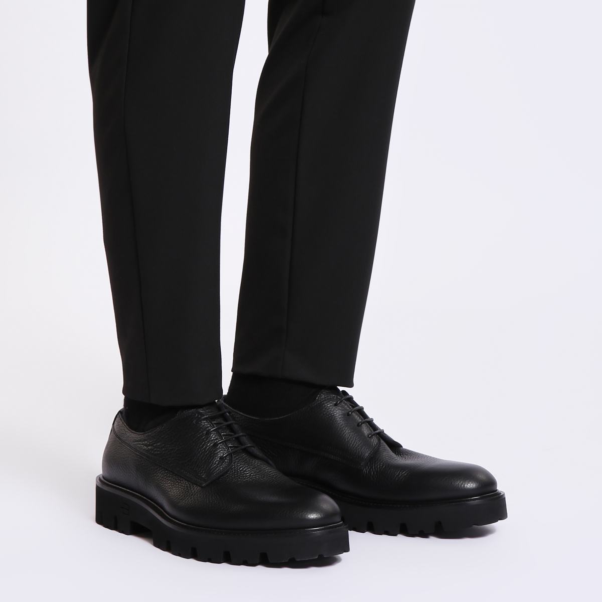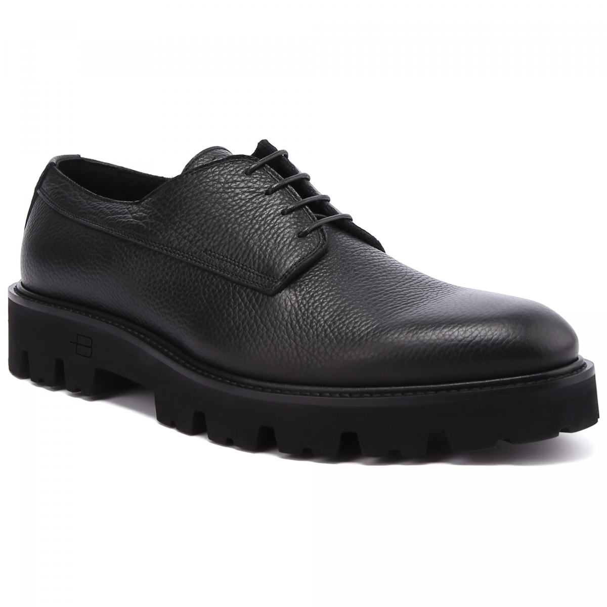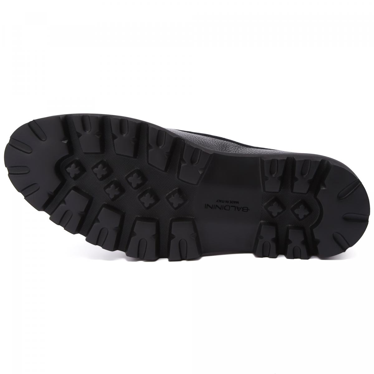 Туфли из натуральной зернистой кожи из новой коллекции бренда Baldinini. Чёрные туфли отлично подойдут для повседневных осенних образов. Модель выполнена из зернистой кожи, на высокой резиновой подошве с объёмным протектором. Туфли будут сочетаться с джинсами и базовыми брюками в городском стиле. Внутри утеплённая шерстяная подкладка и стелька из натуральной кожи.