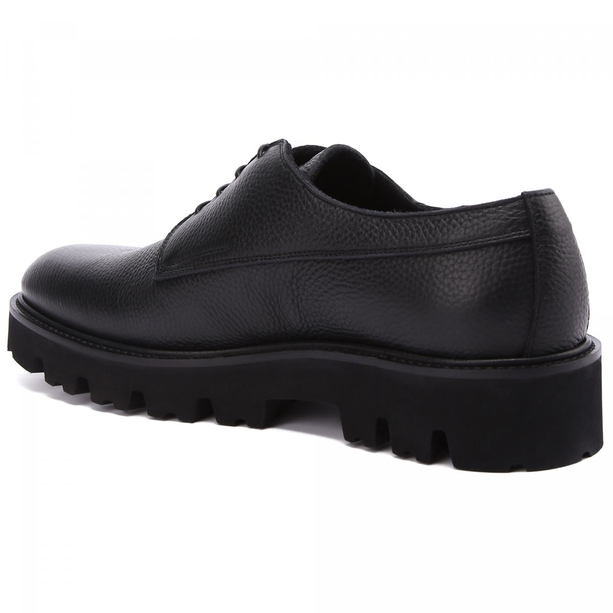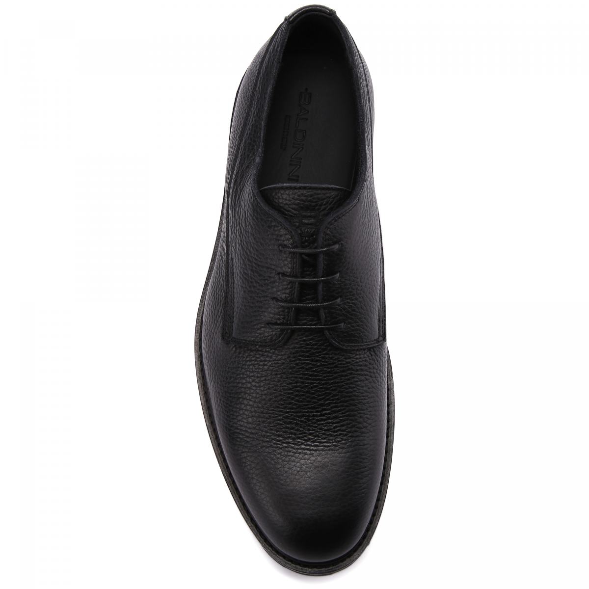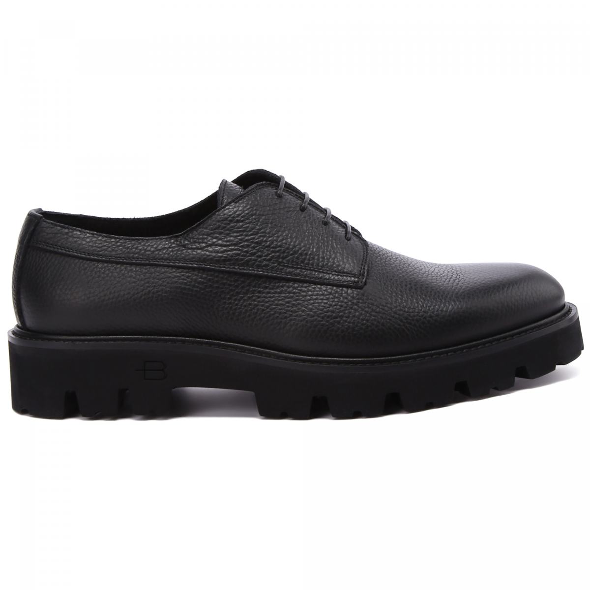 Туфли из натуральной зернистой кожи из новой коллекции бренда Baldinini. Чёрные туфли отлично подойдут для повседневных осенних образов. Модель выполнена из зернистой кожи, на высокой резиновой подошве с объёмным протектором. Туфли будут сочетаться с джинсами и базовыми брюками в городском стиле. Внутри утеплённая шерстяная подкладка и стелька из натуральной кожи.