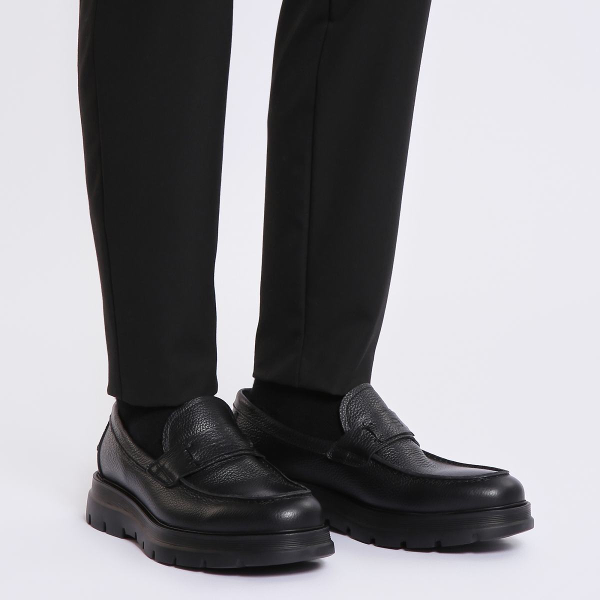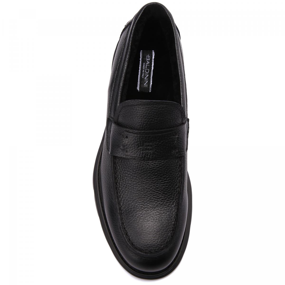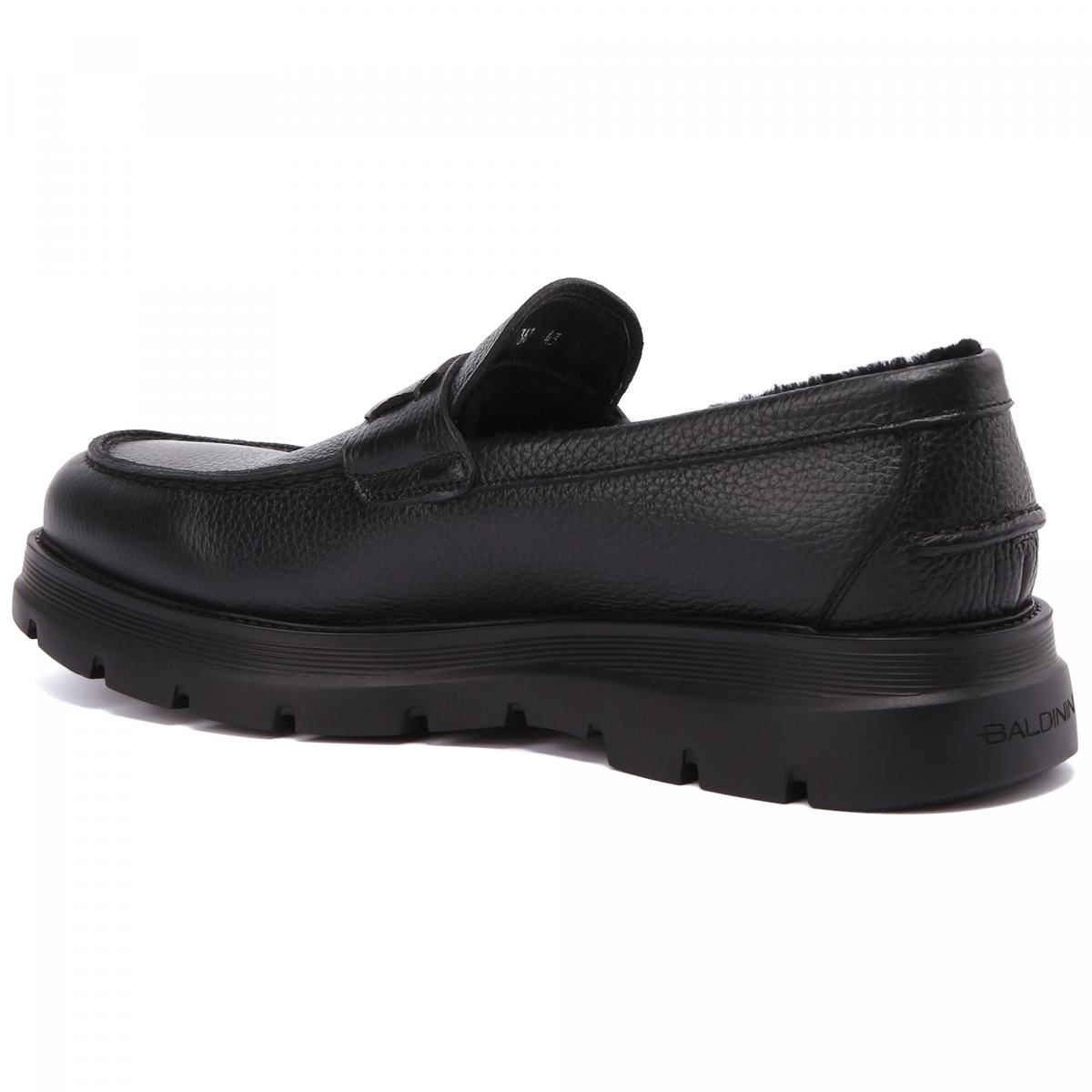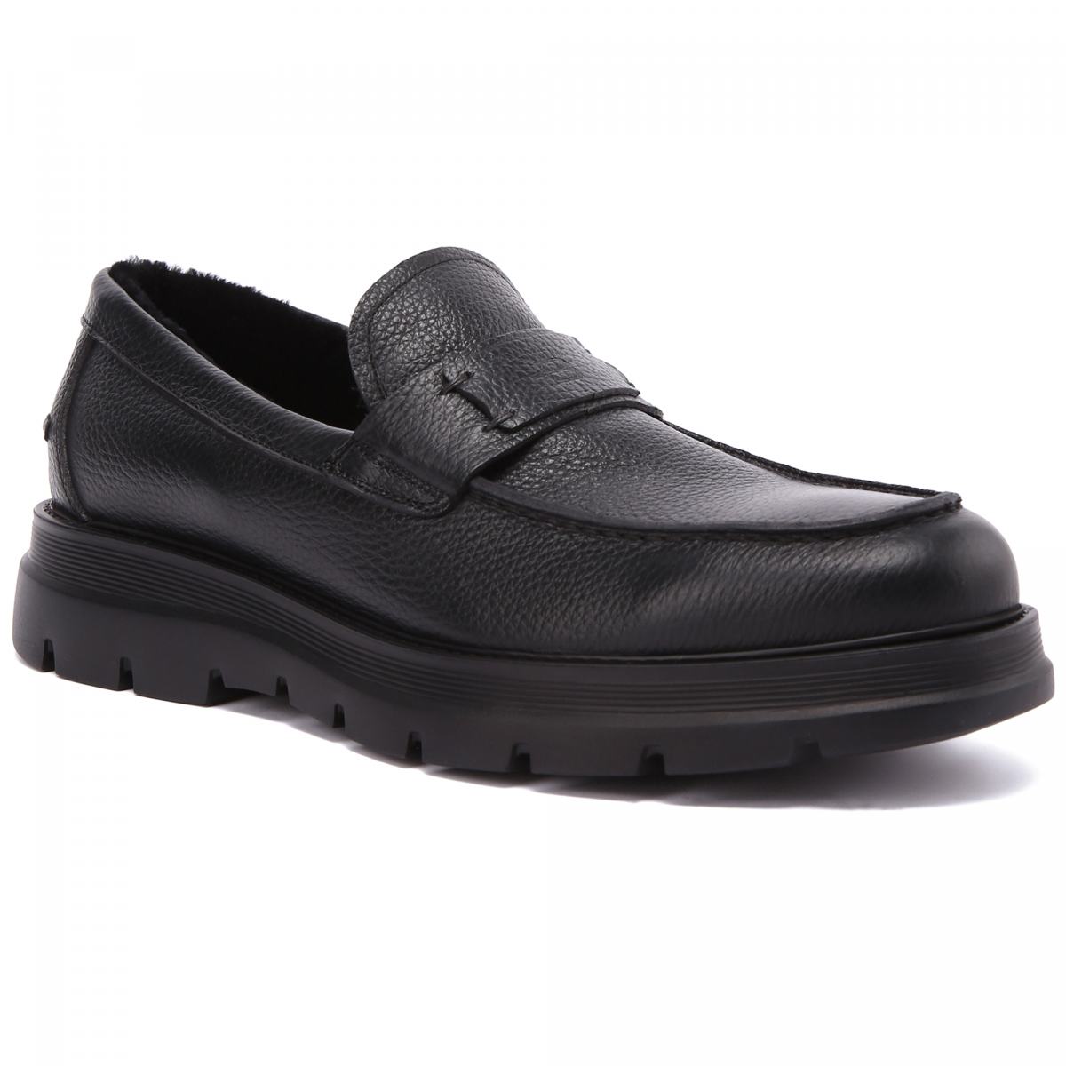 Утеплённые лоферы из натуральной чёрной кожи от Baldinini. Эти лоферы отлично подойдут для повседневных осенних образов. Модель выполнена из зернистой кожи, на высокой резиновой подошве. Лоферы будут сочетаться с джинсами и базовыми брюками в городском стиле. Подкладка и стелька выполнены из натурального меха.