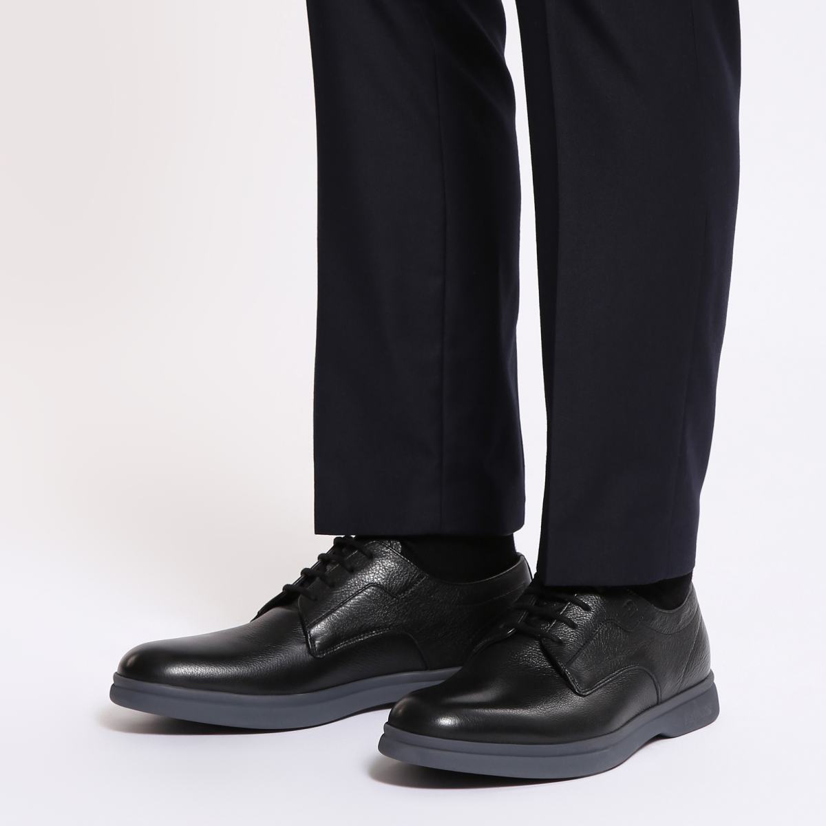 Чёрные классические туфли пригодятся для составления деловых и повседневных образов в прохладное время года. Модель выполнена из натуральной кожи, внутри шерстяной подклад и стелька из кожи. Резиновая подошва защитит от скольжения. Туфли будут гармонично смотреться с джинсами и брюками любых оттенков.