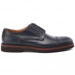 Туфли из натуральной кожи синего цвета от Moreschi. Элегантная модель с рисунком-перфорацией подойдёт как к строгим образам, так и к более расслабленному повседневному стилю. Подкладка и стелька выполнены из натуральной кожи, подошва с небольшим каблуком - из резины.