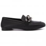 Туфли-лоферы из мягкой чёрной кожи от Casadei. Совершенные «лоферы для путешествий». Пара увенчана большой металлической цепочкой и имеет небольшой каблук. Стелька выполнена из натуральной кожи.