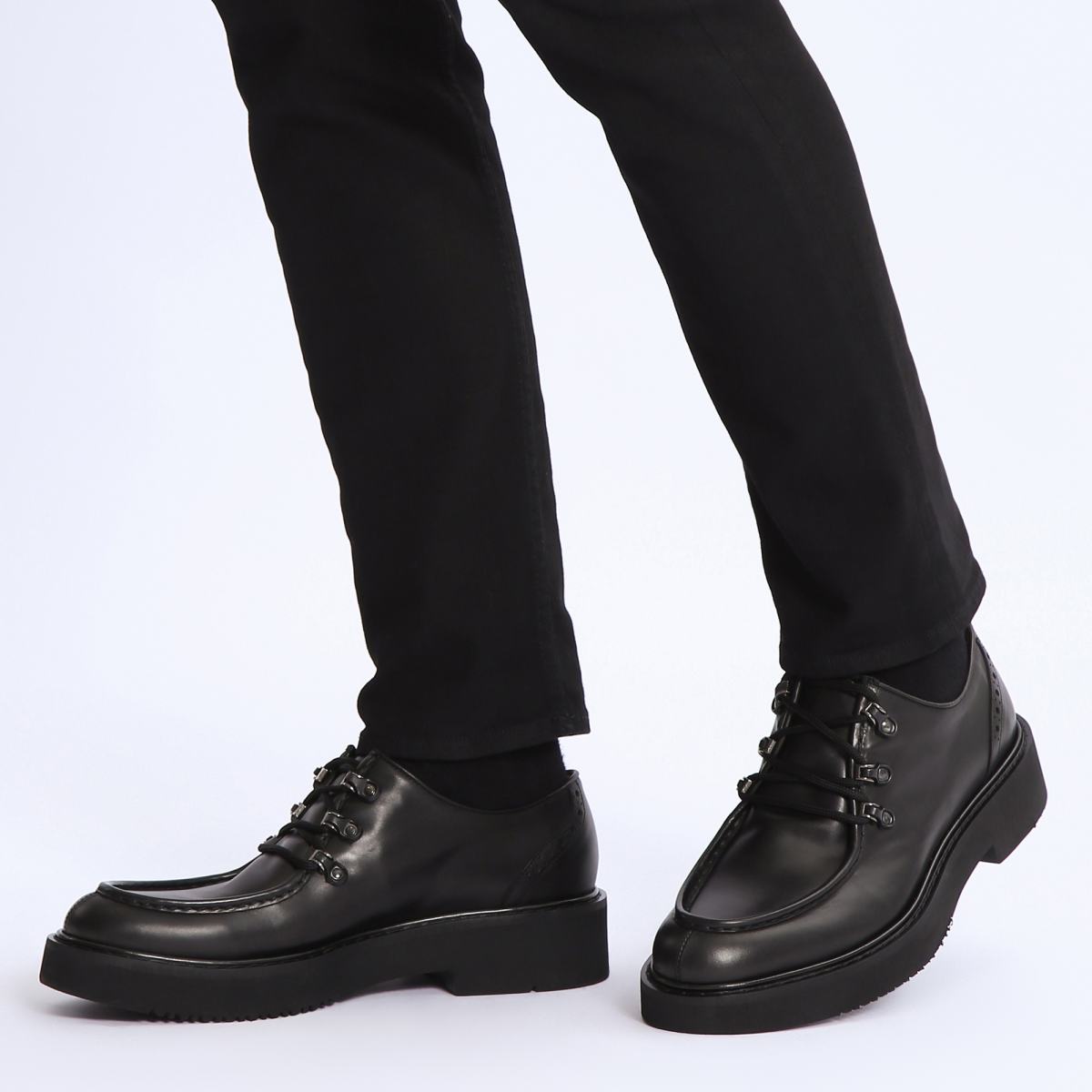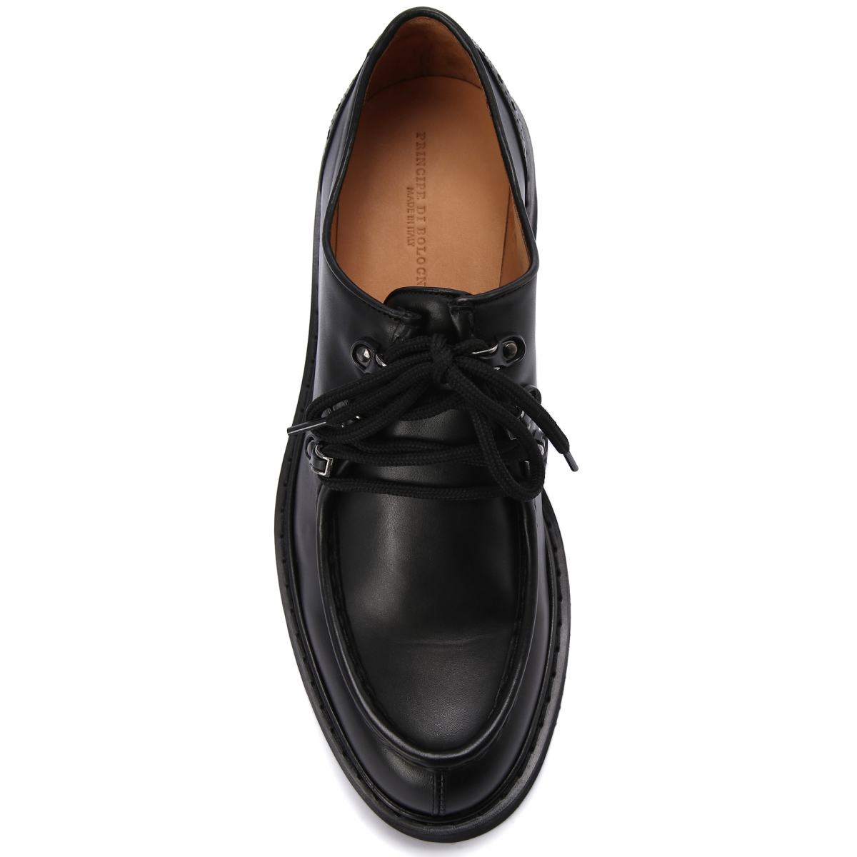 Черные туфли на шнуровке от Principe di Bologna идеальны для нестрогого делового дресс-кода. Модель выполнена из натуральной кожи, на резиновой подошве. Внутри подклад и стелька также из кожи. Декоративная перфорация сбоку, а также наружный шов добавляют расслабленности в дизайн пары. Туфли легко сочетать как с брюками, так и с темными джинсами.