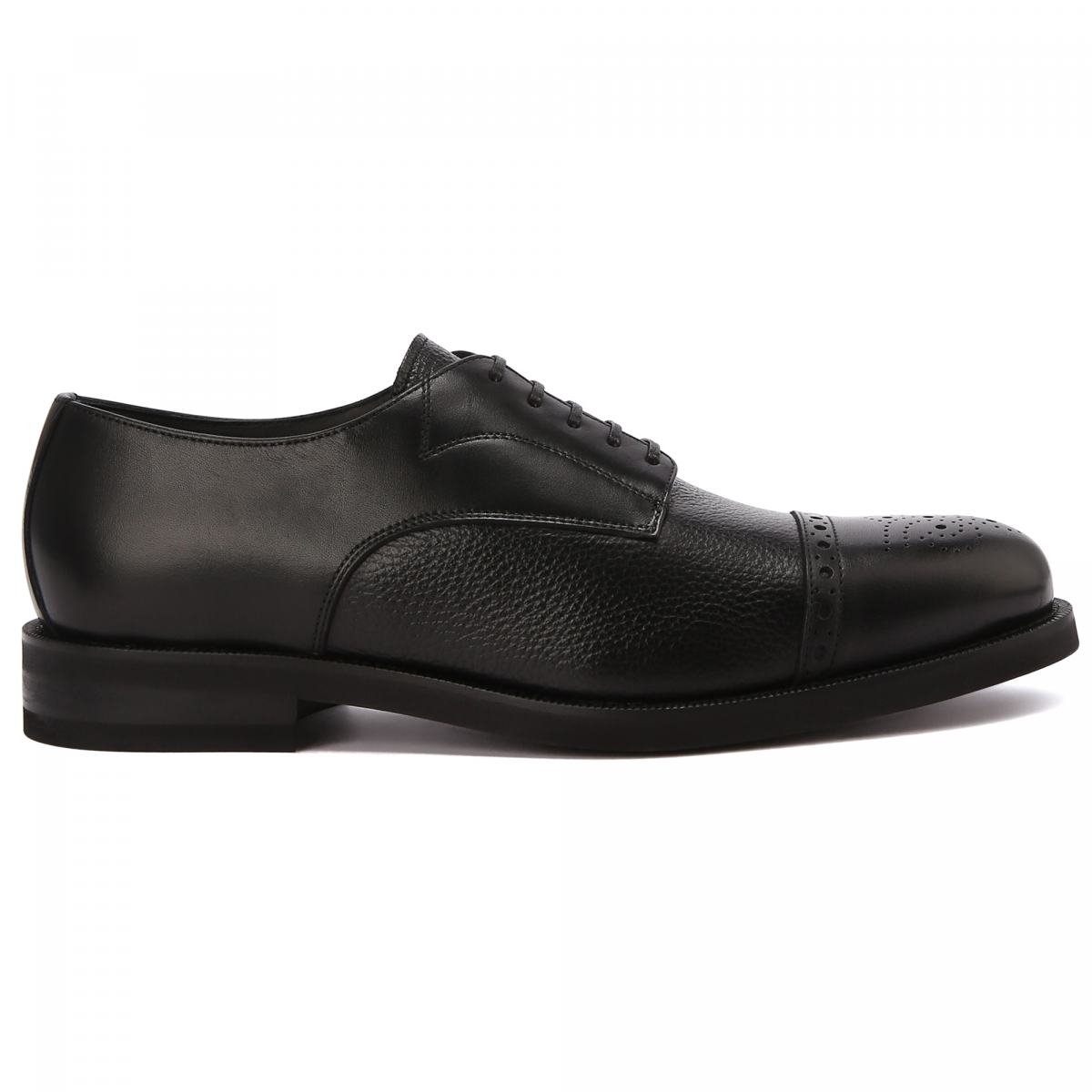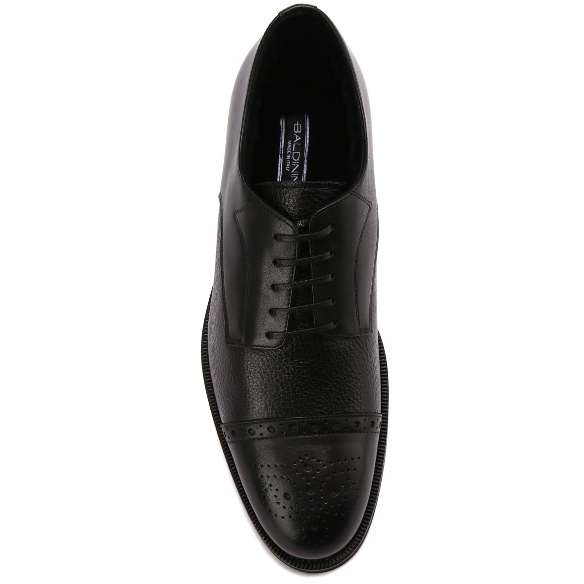 Туфли из натуральной кожи от Baldinini. Возведите ваш деловой образ на новый уровень с помощью этих ботинок, украшенной множеством деталей. Верхняя часть из черной кожи с узором, выполненным техникой лазерной перфорации, контрастирует с вставкой из гладкой кожи. Резиновая подошва дарит дополнительный комфорт. Внутри утепленные подкладка и стелька из натурального меха.