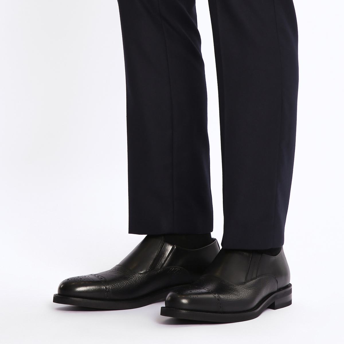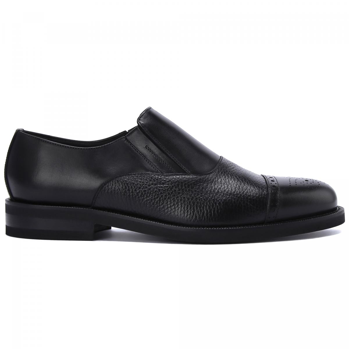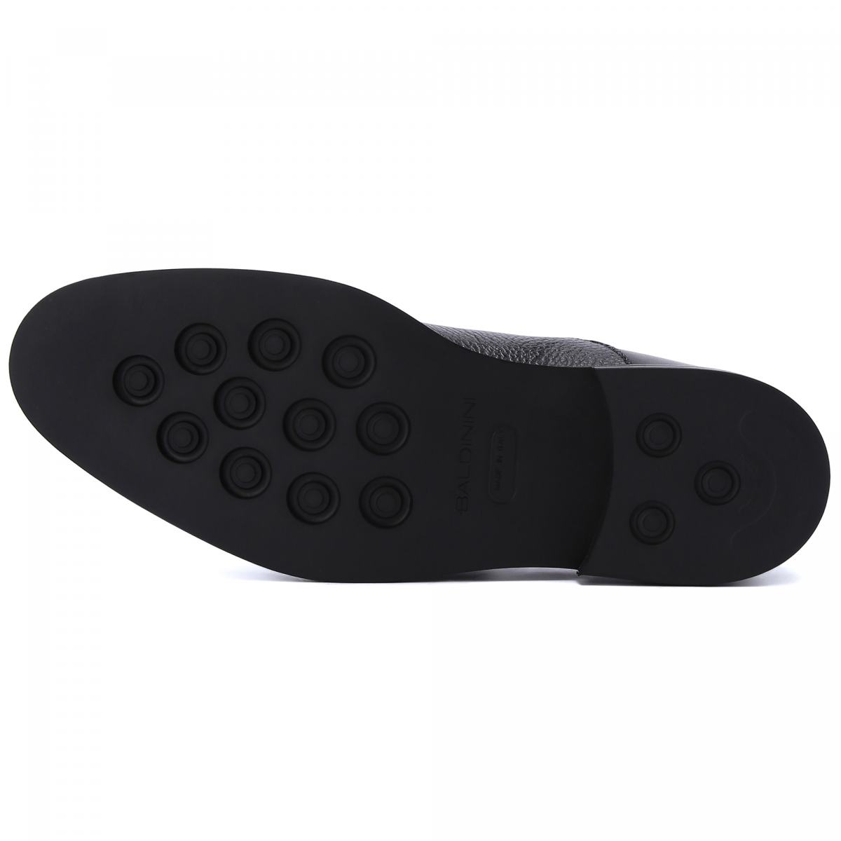 Туфли из натуральной чёрной кожи от Baldinini. В гардеробе каждого мужчины должна быть пара надёжных кожаных туфель. Эта модель из чёрной кожи с декоративным рисунком на носовой части идеально дополнит ваш ежедневный образ. Пара без шнуровки, с эластичными вставками спереди. Резиновая подошва, подкладка и стелька из натуральной кожи.