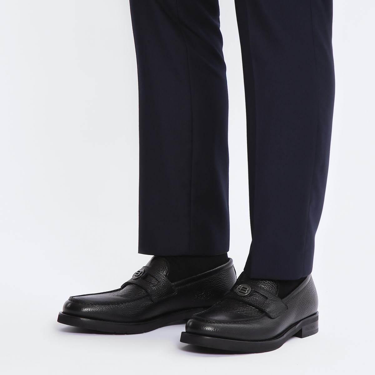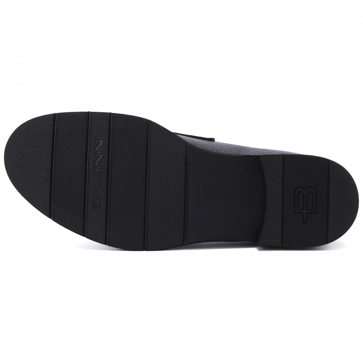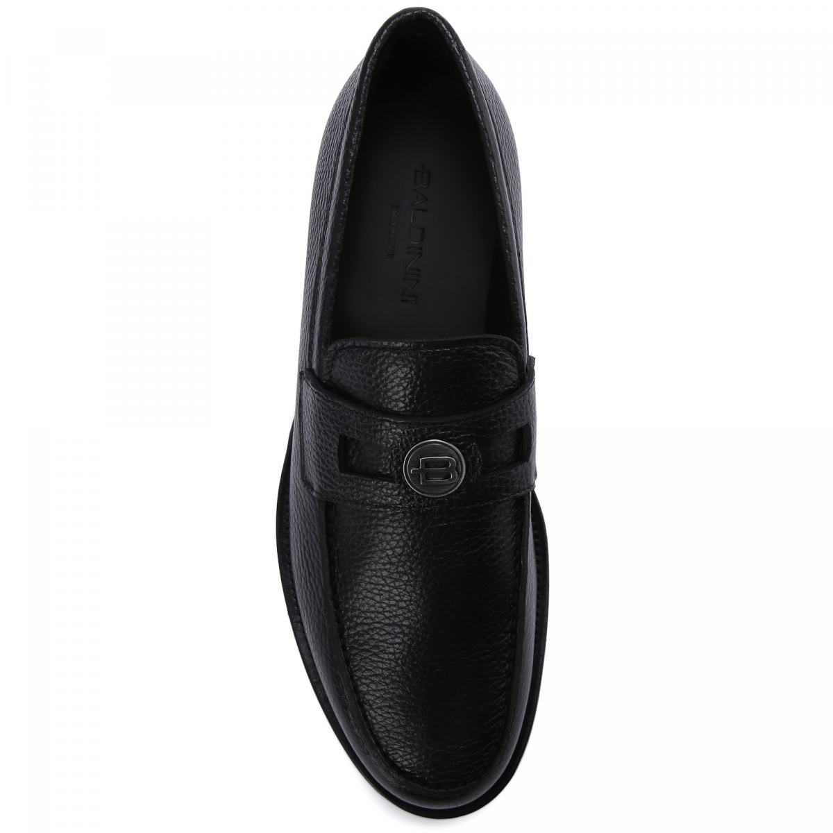 Туфли из натуральной кожи от Baldinini. Повседневная элегантность этих чёрные мокасин делает их идеальным выбором на любой случай. Классическая модель из кожи на толстой резиновой подошве с логотипом Baldinini на пятке и металлическим декором спереди. Внутри шерстяная подкладка и стелька из натуральной кожи.