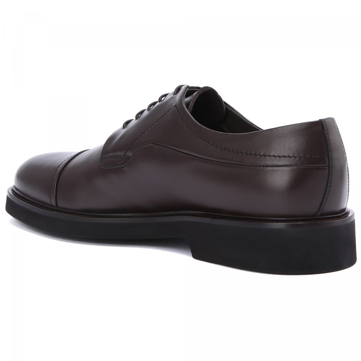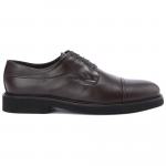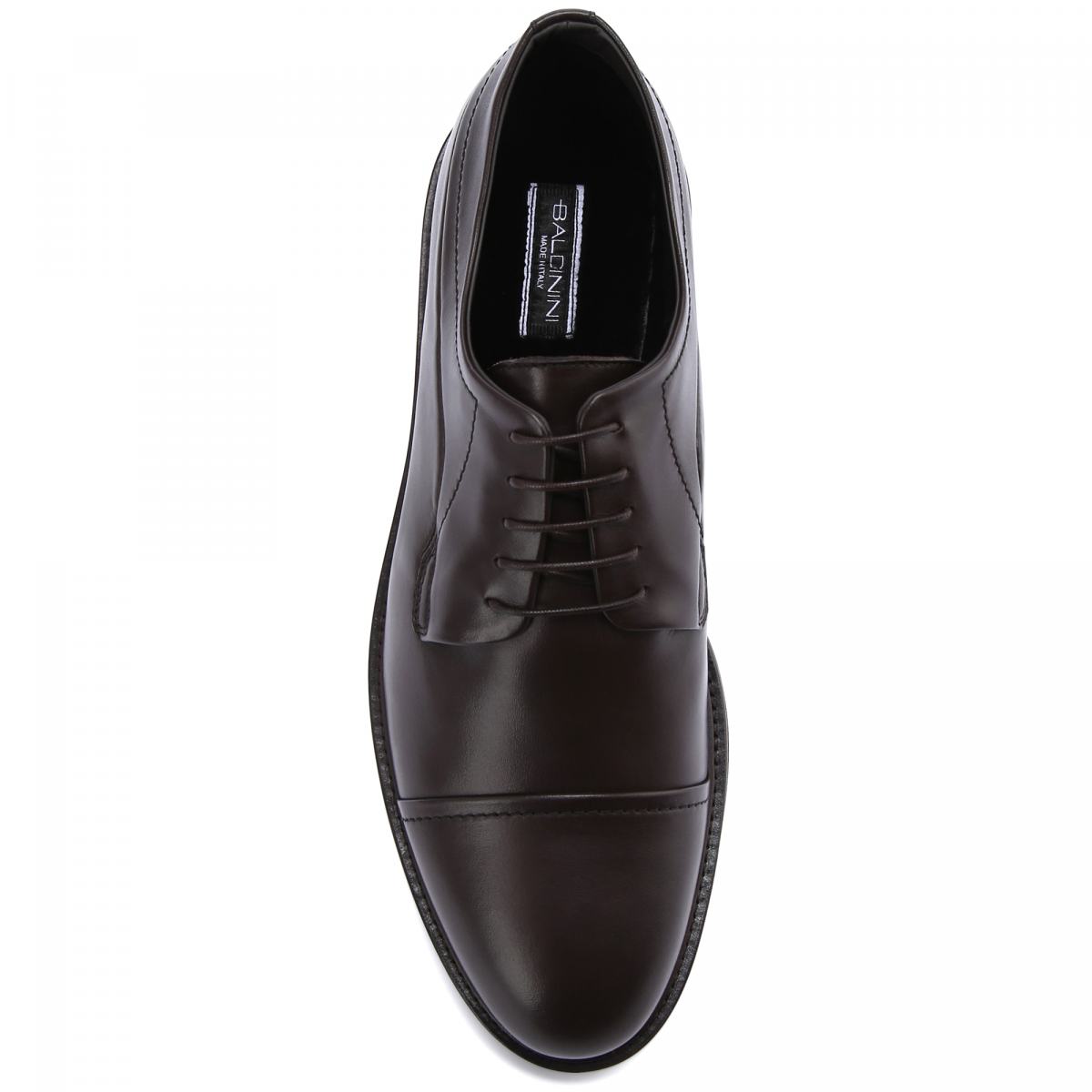 Туфли из гладкой тёмно-коричневой кожи от Baldinini. Модель на шнурках коричневого цвета создает баланс между повседневным и элегантным образом и идеально подойдет как для профессиональной деятельности, так и для загородных поездок. Прочная кожа соседствует с толстой резиновой подошвой. Подкладка и стелька из натурального меха обеспечит тепло и комфорт.
