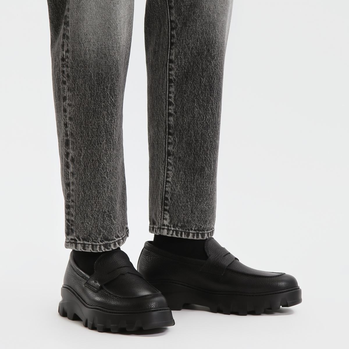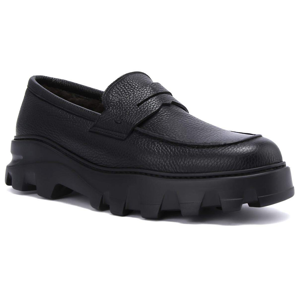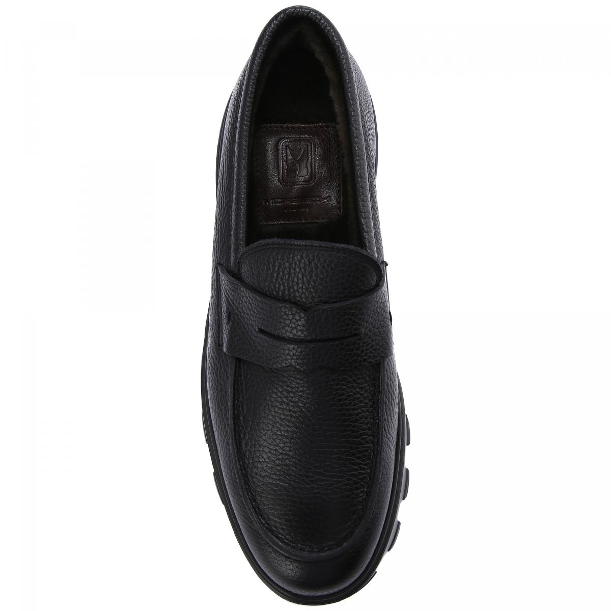Лоферы из натуральной кожи в чёрном цвете от Moreschi. Практичная и универсальная модель в стиле casual, которая сочетается как с джинсами так и с брюками. Верх из зернистой кожи, высокая резиновая подошва с объёмным протектором, внутри утеплённые мехом подкладка и стелька.