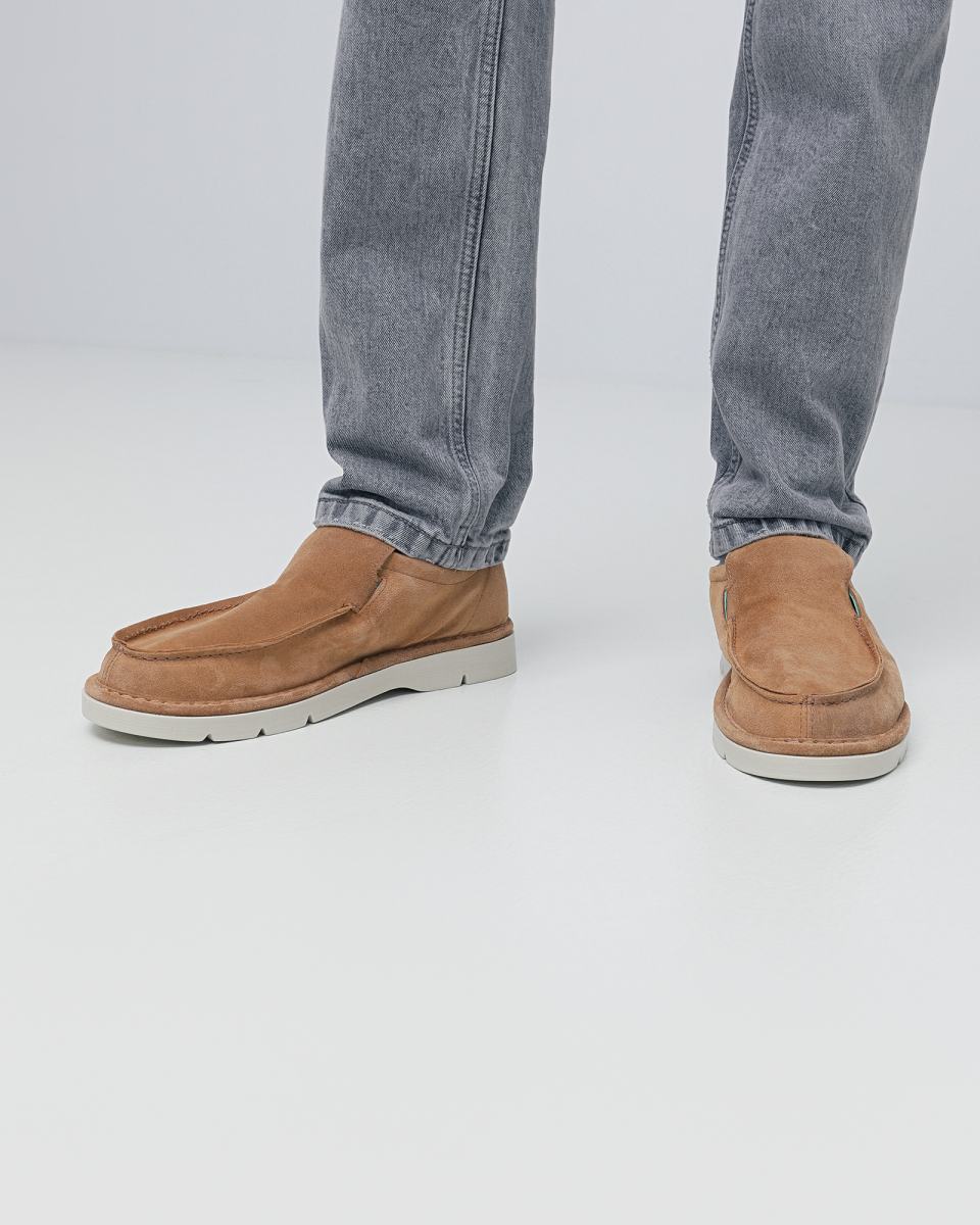 Мягкие мокасины из коричневой замши от Panchic. Пара из новой летней коллекции бренда подойдёт к повседневным образам в стиле casual. Верх из мягкой замши, практичная резиновая подошва, петелька сзади для удобного надевания. Стелька выполнена из качественной эко кожи.