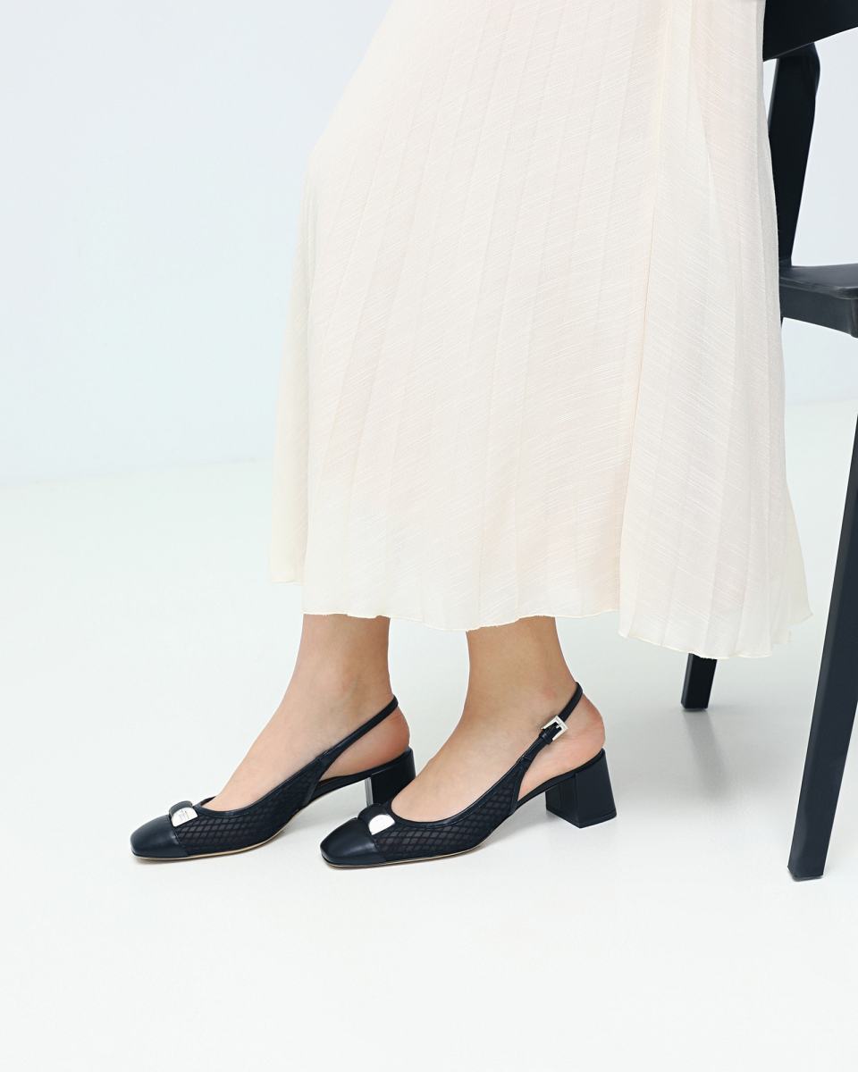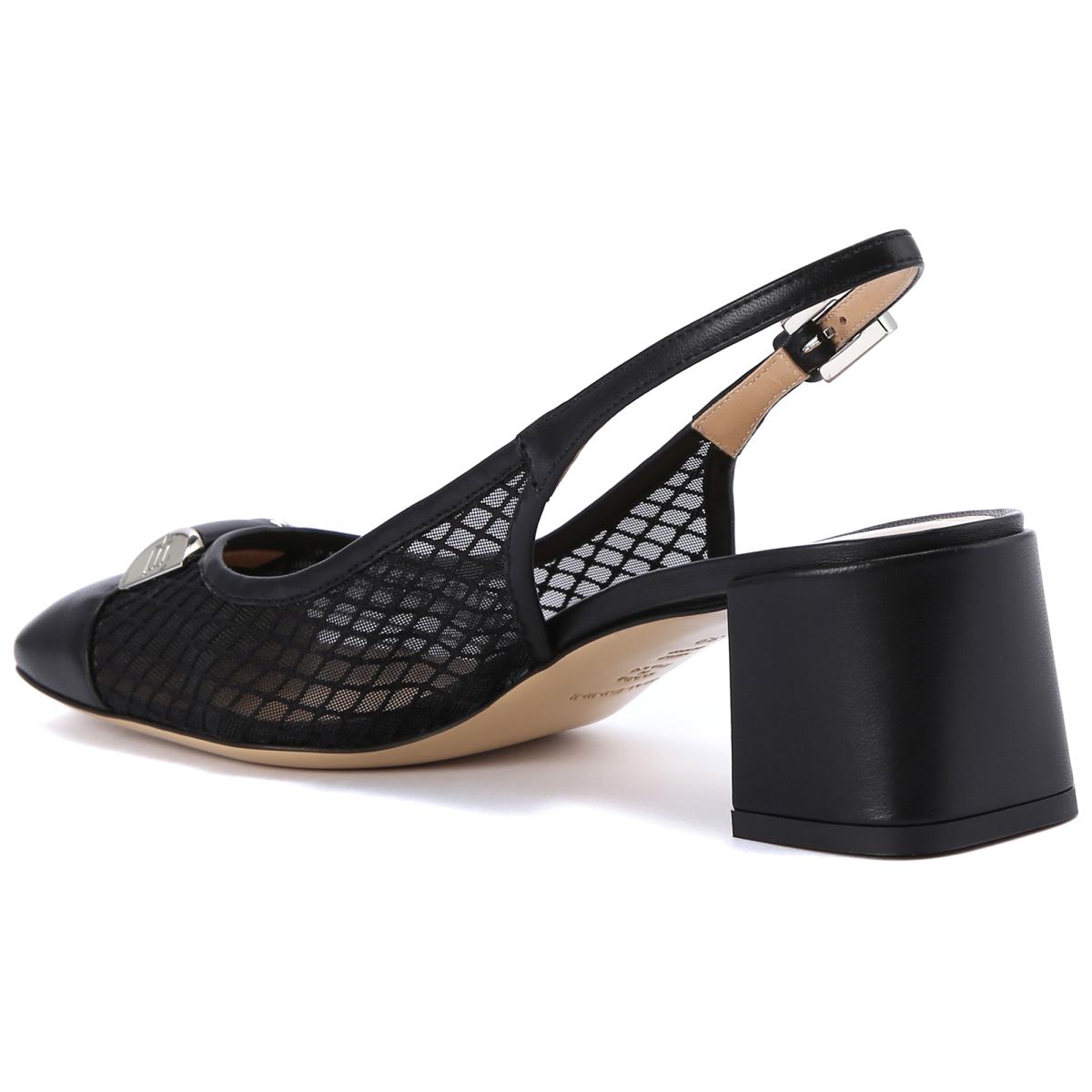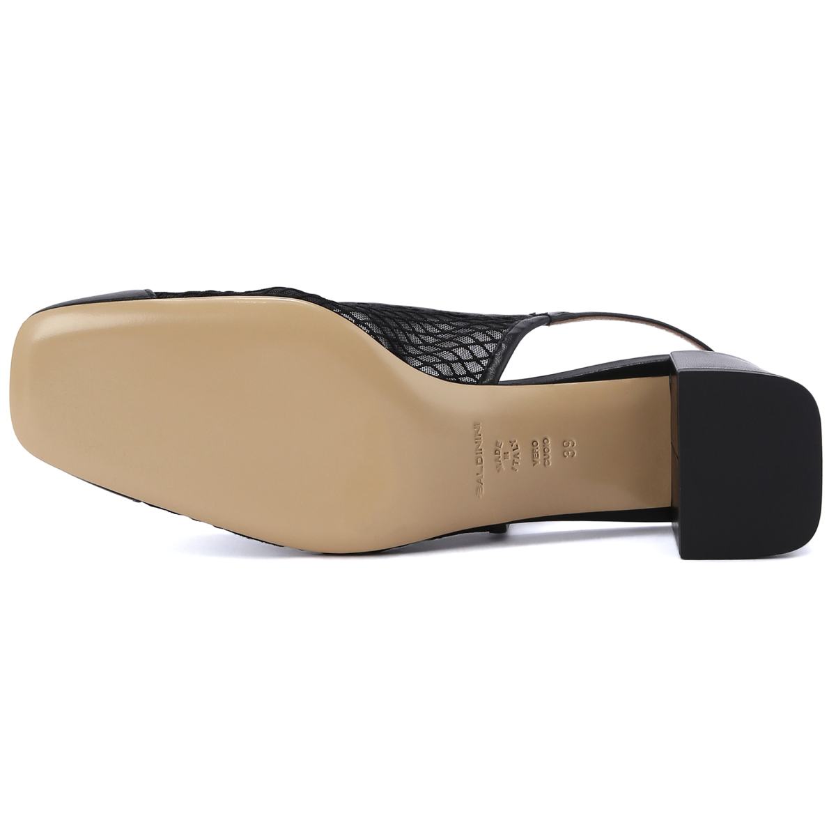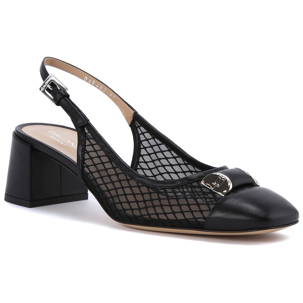 Черные туфли с открытой пяткой от Baldinini станут акцентной деталью вашего образа, благодаря дизайну. Модель выполнена из сетки с кожаной окантовкой, носок — из натуральной кожи. Комфорт обеспечивают не только легкие материалы, но и устойчивый каблук высотой 5,5 см. Стопу фиксирует ремешок с регулируемой застежкой на пятке, а завершает дизайн вставка на передней части. Несмотря на классическую форму, туфли больше всего подойдут для составления повседневных образов с платьями, брюками и джинсами.