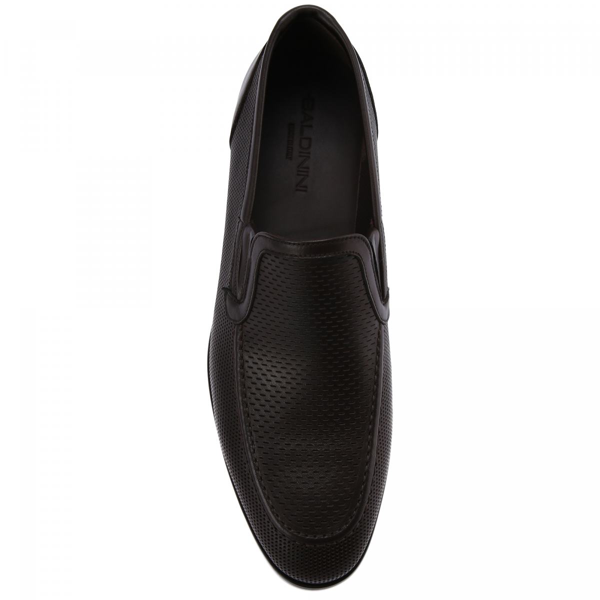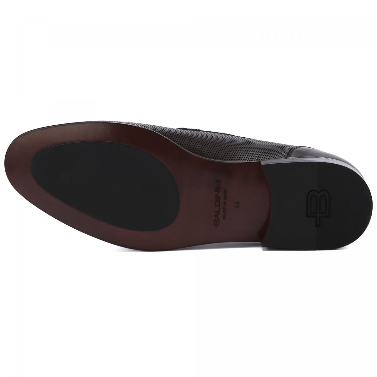 Тёмно-коричневые туфли Baldinini с зауженным мысом впишутся в образы в деловом стиле. Модель выполнена из натуральной кожи с перфорированным рисунком. Внутри подклад и стелька также из кожи, подошва — из резины. Туфли будут гармонично смотреться с костюмами или отдельно с брюками и рубашками или джемперами.