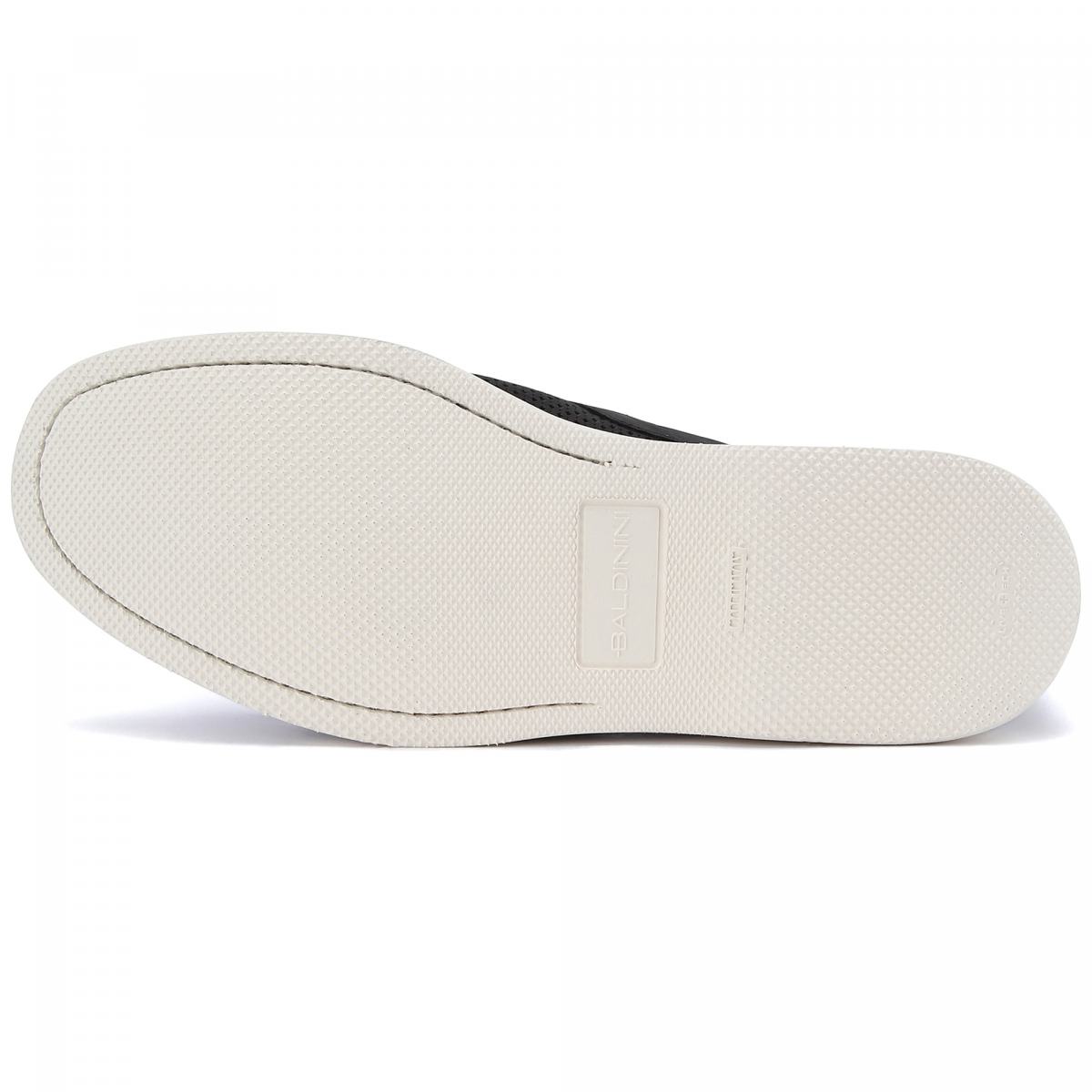 Чёрные туфли от Baldinini станут облегченным и комфортным вариантом для теплых дней. Модель выполнена из натуральной кожи матовой фактуры со сквозной перфорацией. Подошва в контрастном светлом оттенке — из резины. Спереди пару украшает эмблема бренда и декоративный шов. Туфли легко сочетать как с брюками, так и с шортами.