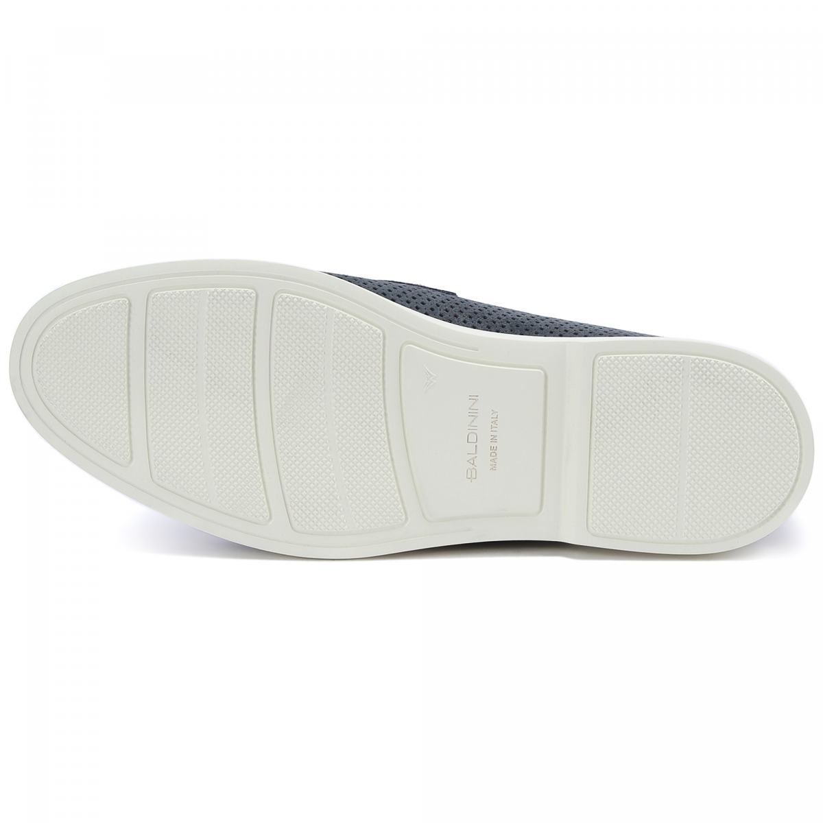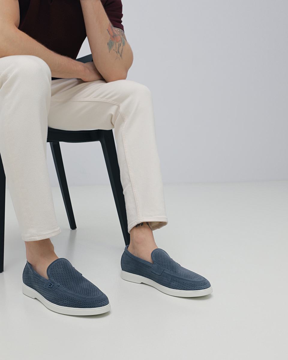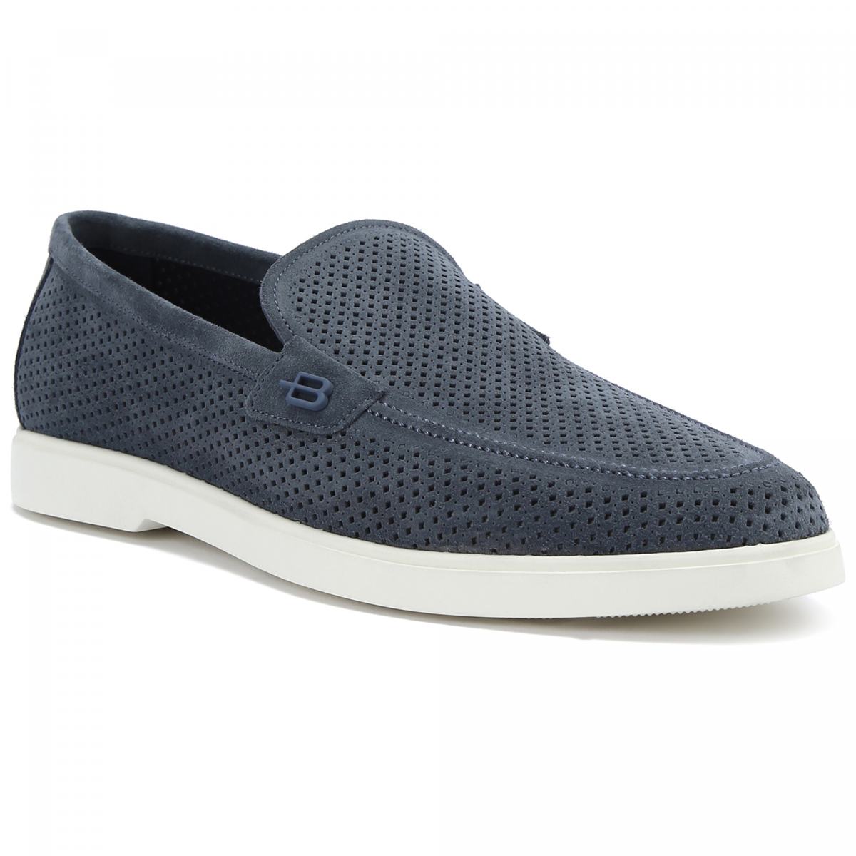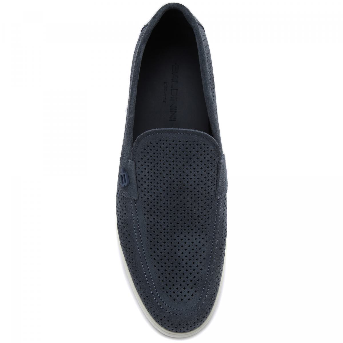 Синие туфли Baldinini обеспечат комфорт даже в жаркие дни. Модель выполнена из натуральной замши со сквозной перфорацией, что обеспечит циркуляцию воздуха. Внутри подклад и стелька из кожи, подошва — из резины. Дизайн завершает небольшая вставка сбоку в виде буквы B. Туфли можно сочетать как с брюками из легких тканей, так и с шортами.
