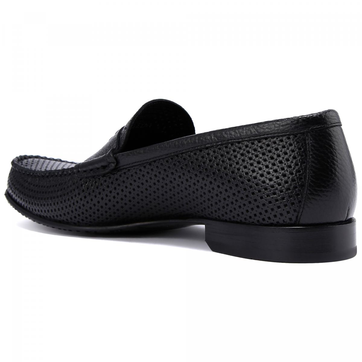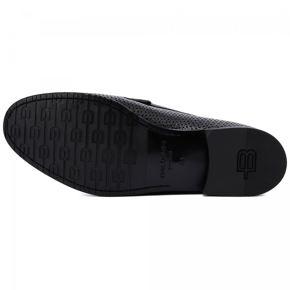 Туфли из черной кожи с перфорацией от итальянского бренда Baldinini. Эти туфли из натуральной кожи дополнены сквозной микро-перфорацией, которая обеспечивает дополнительную вентиляцию даже в жаркие дни. Используйте их как замену вашим базовым ботинкам делового стиля. Для создания модного образа сочетайте их с зауженными брюками и оригинальной рубашкой. Подошва выполнена из резины, подкладка и стелька - из кожи. Дизайн завершает фирменный знак бренда - буквы В спереди.