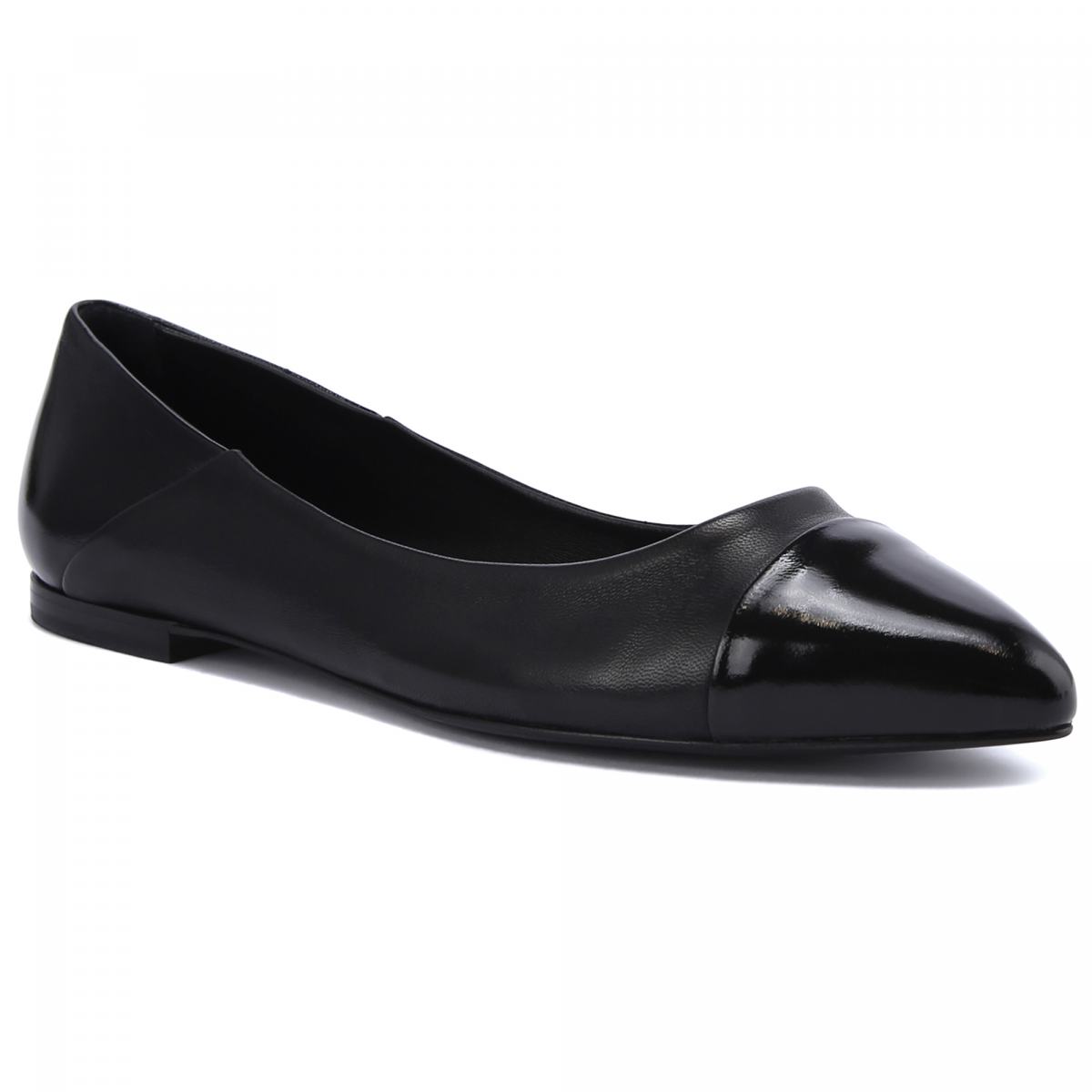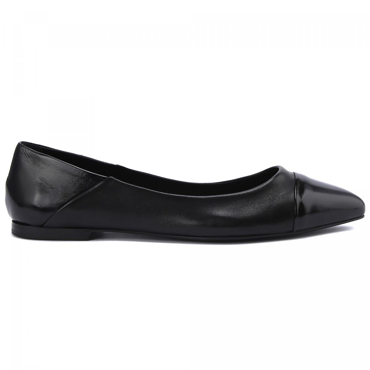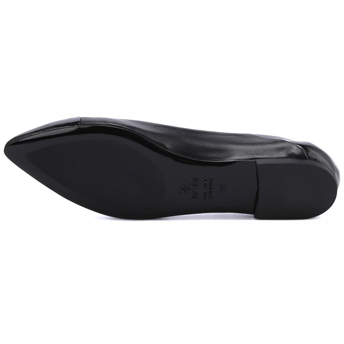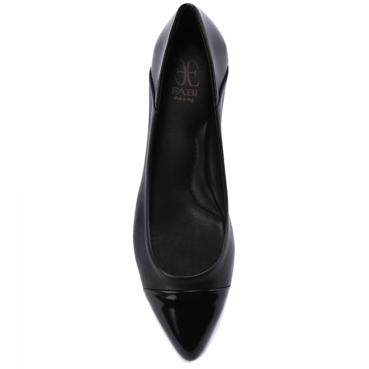 Туфли из натуральной кожи в черном цвете от Fabi. Туфли-лодочки с плоским каблуком и вставками из лакированной кожи на пятке и носке. Пара, идеально подходящая для повседневных образов в расслабленном или деловом силе. Подошва, стелька и подкладка выполнены из натуральной кожи.