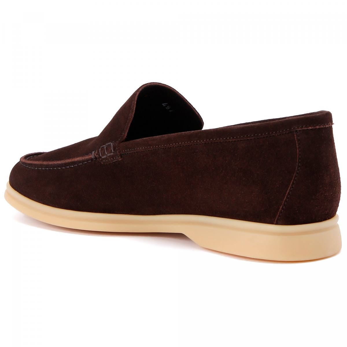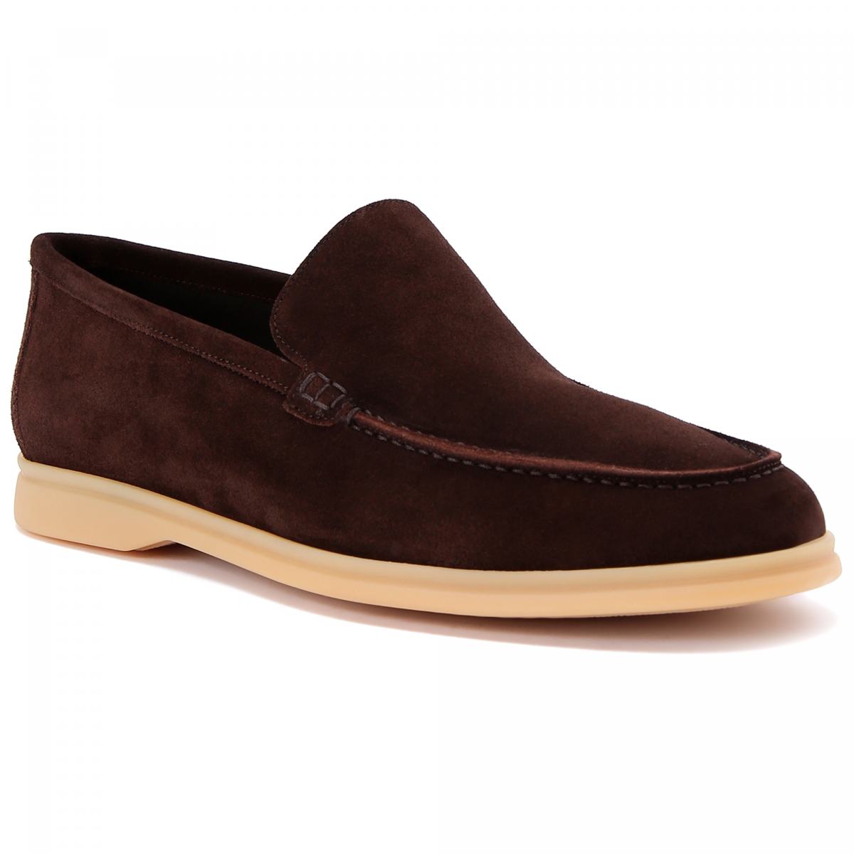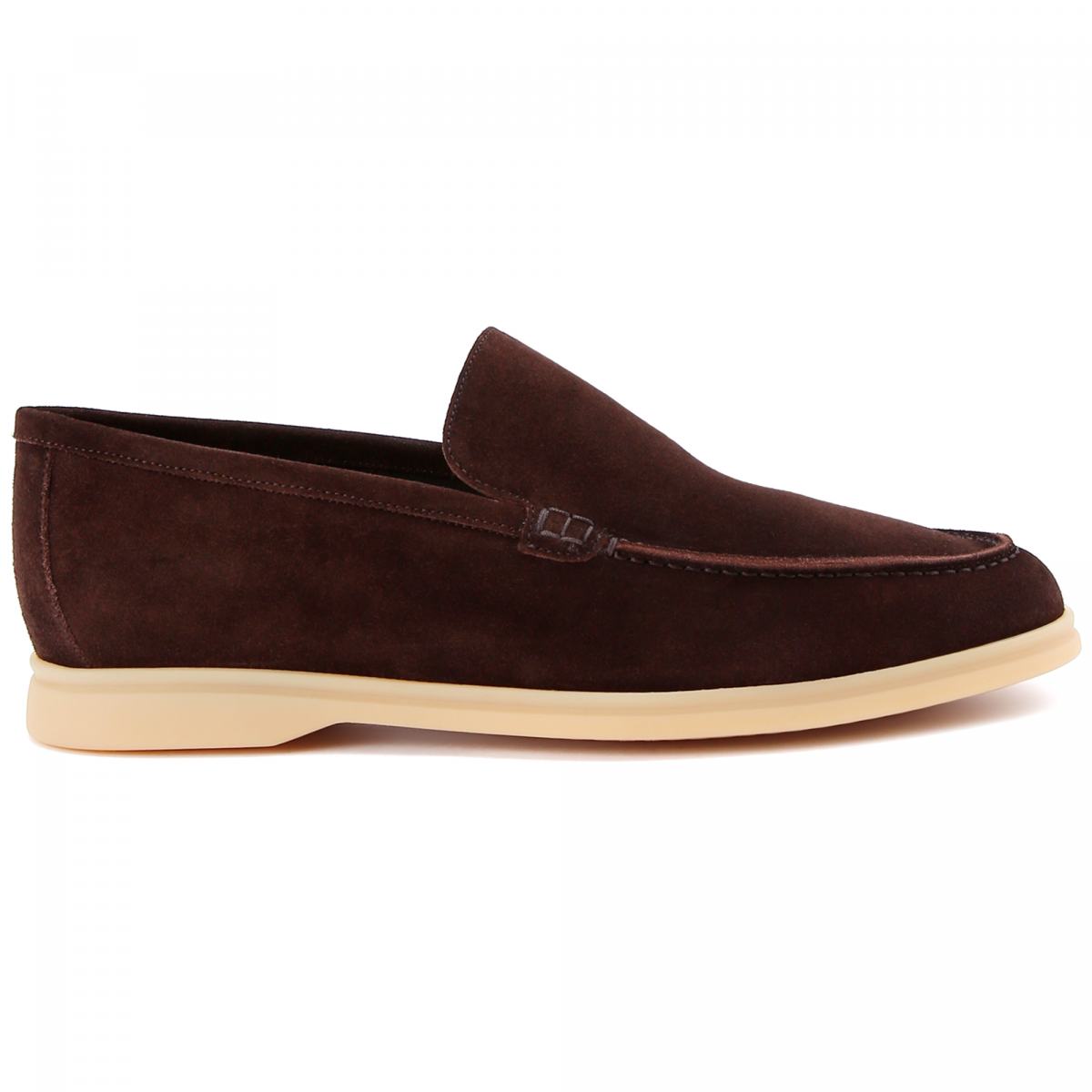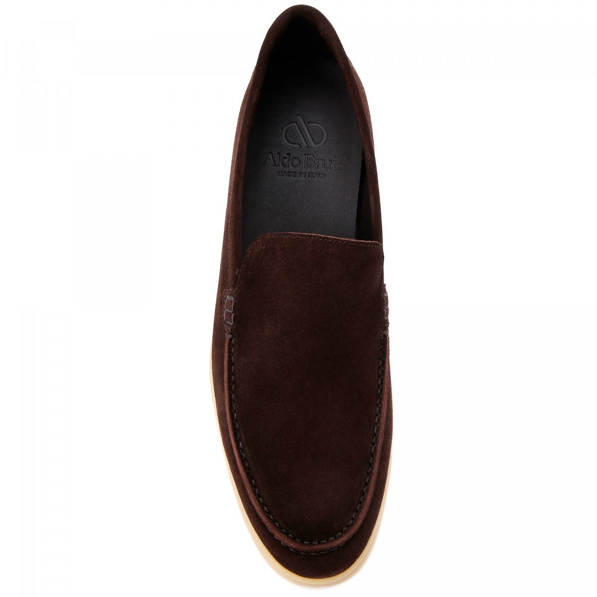 Лоферы из коричневой замши от Aldo Brue. Лоферы из летней коллекции выполнены из натуральной мягкой замши и дополнены гибкой резиновой подошвой, благодаря которой в них будет легко и комфортно в течение всего дня. Минималистичный дизайн и качественные материалы позволят вам полюбить эту модель всей душой. Носите их с джинсами или брюками, в офис или на прогулку - классические лоферы будут актуальны в любой ситуации. Подкладка и стелька выполнены из натуральной мягкой кожи.