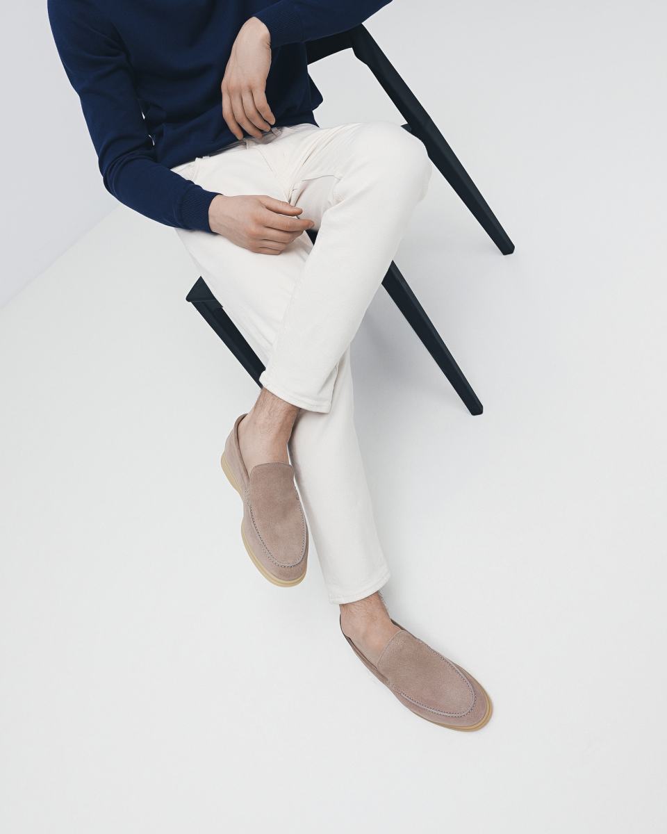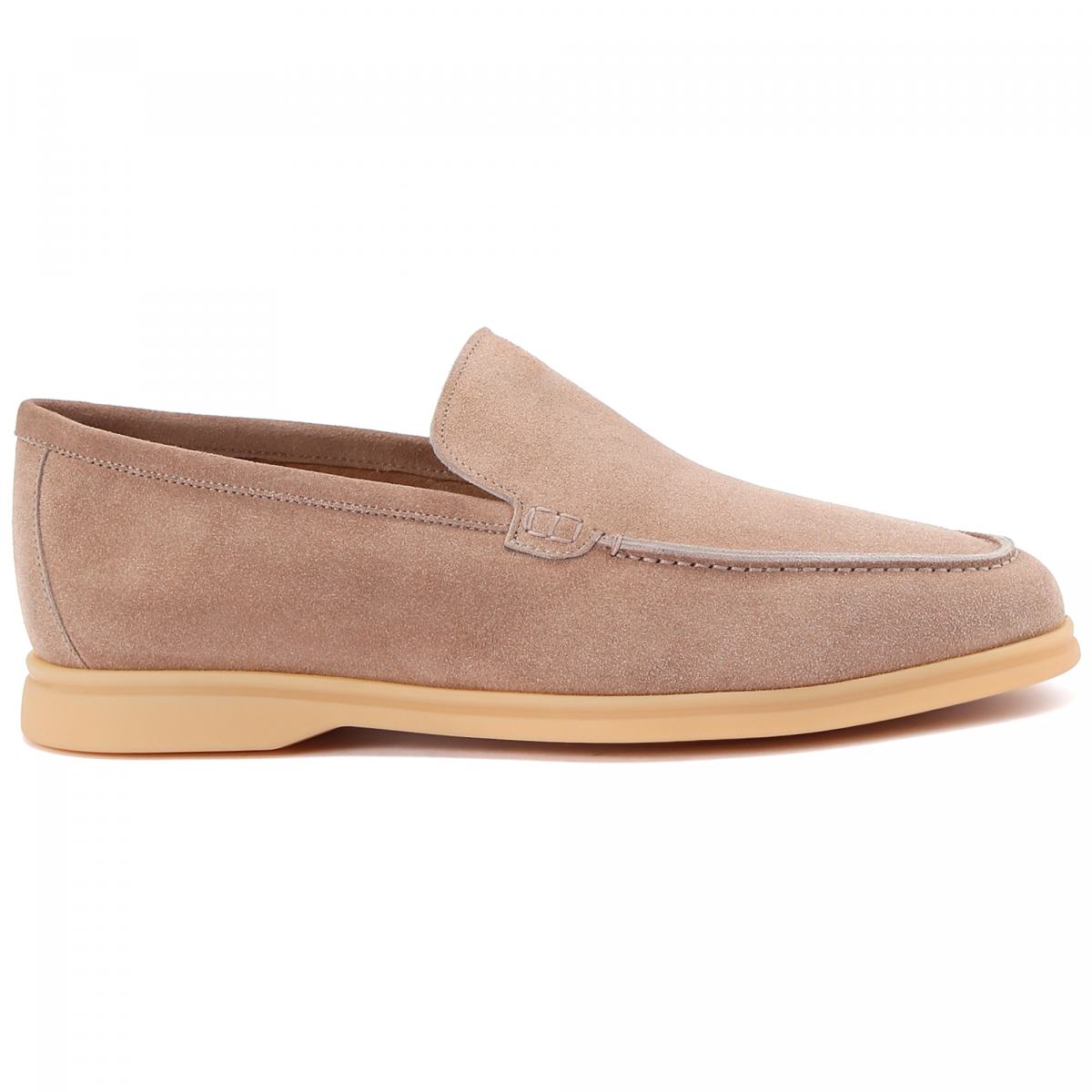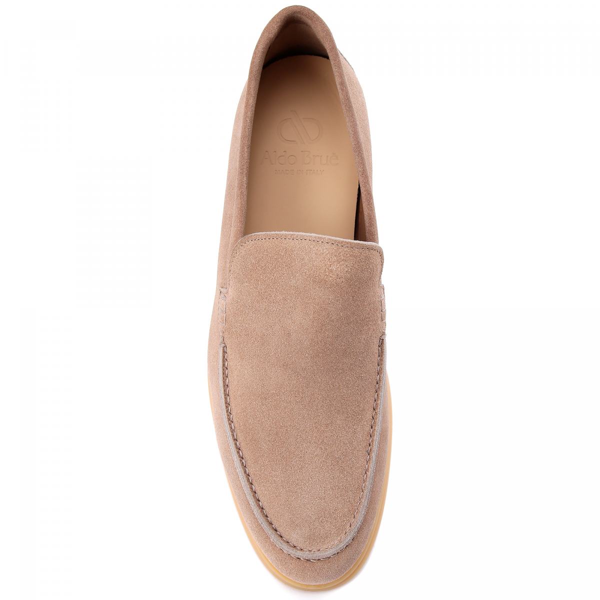 Лоферы из тёмно-бежевой замши от Aldo Brue. Лоферы из летней коллекции выполнены из натуральной мягкой замши и дополнены гибкой резиновой подошвой, благодаря которой в них будет легко и комфортно в течение всего дня. Минималистичный дизайн и качественные материалы позволят вам полюбить эту модель всей душой. Носите их с джинсами или брюками, в офис или на прогулку - классические лоферы будут актуальны в любой ситуации. Подкладка и стелька выполнены из натуральной мягкой кожи.