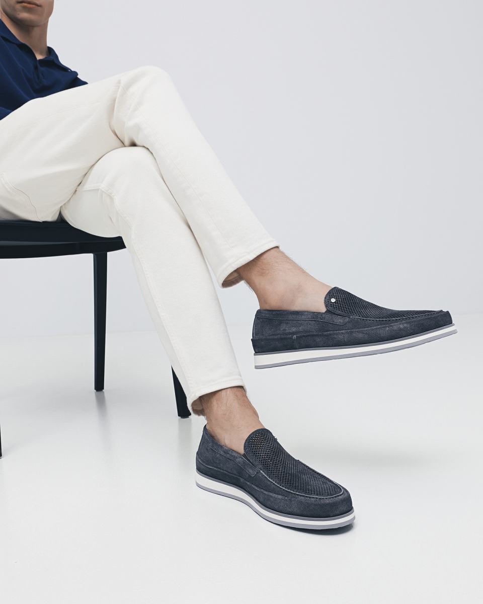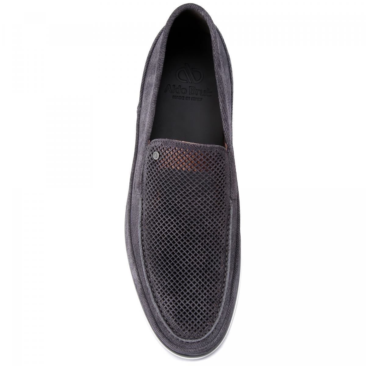 Мокасины из натуральной замшевой кожи в сером цвете от Aldo Brue. Эти лёгкие мокасины в стиле casual созданы в Италии специально для жарких дней. Модель дополнена сквозной перфорацией, обеспечивающей приток воздуха. Стелька из натуральной кожи и гибкая резиновая подошва.
