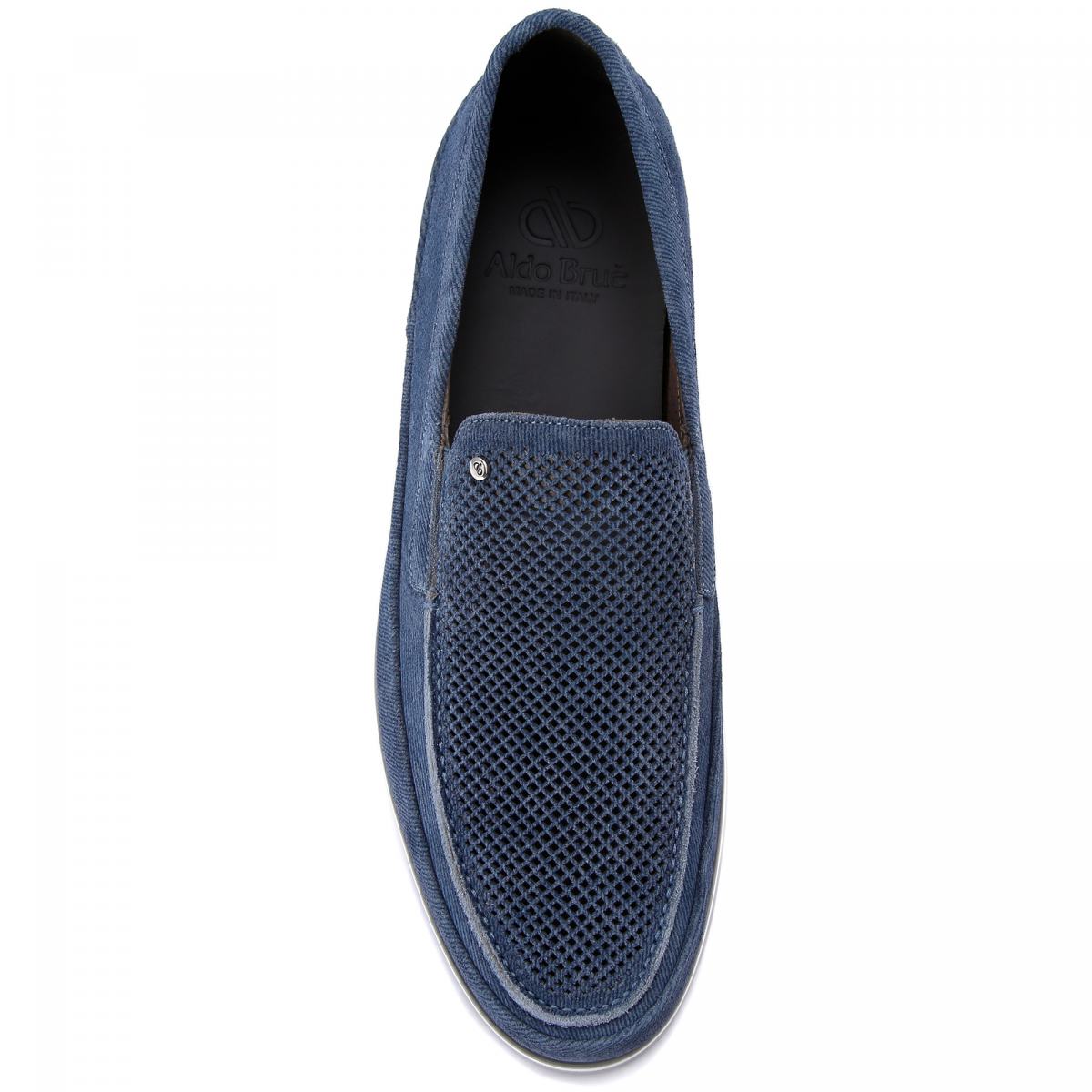 Мокасины из натуральной замшевой кожи в синем цвете от Aldo Brue. Эти лёгкие мокасины в стиле casual созданы в Италии специально для жарких дней. Модель дополнена сквозной перфорацией, обеспечивающей приток воздуха. Стелька из натуральной кожи и гибкая резиновая подошва.