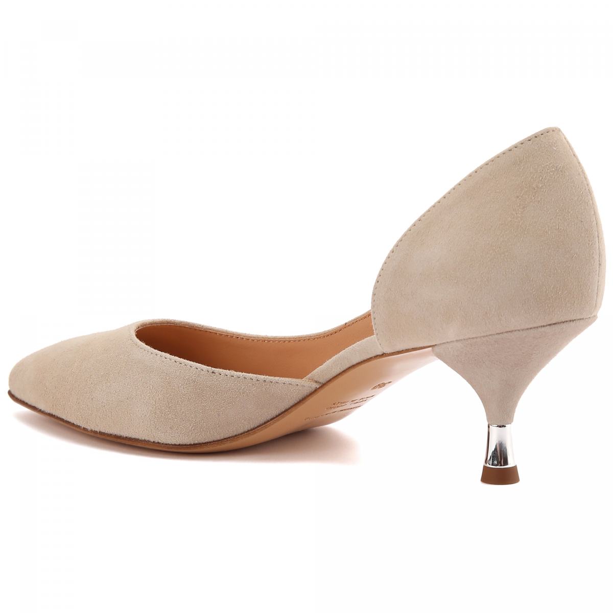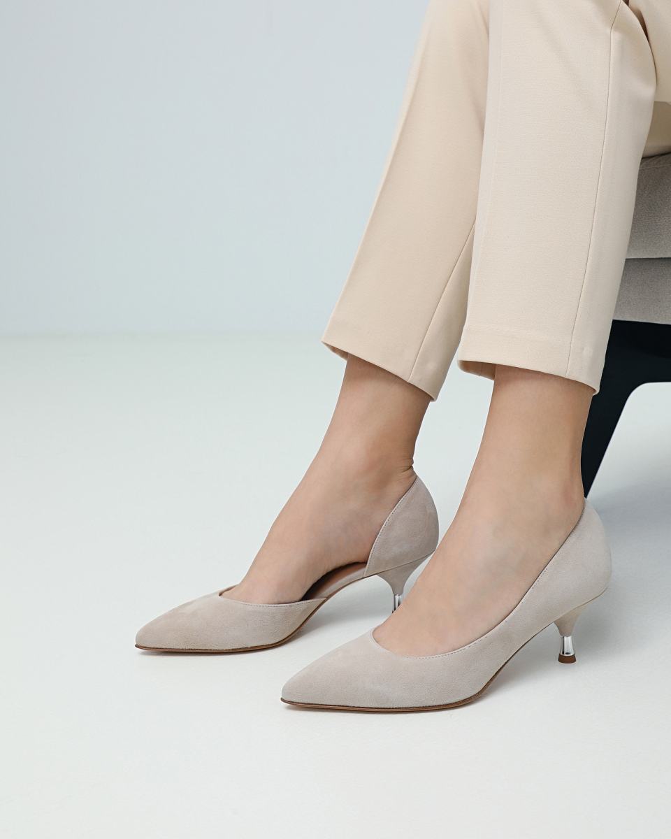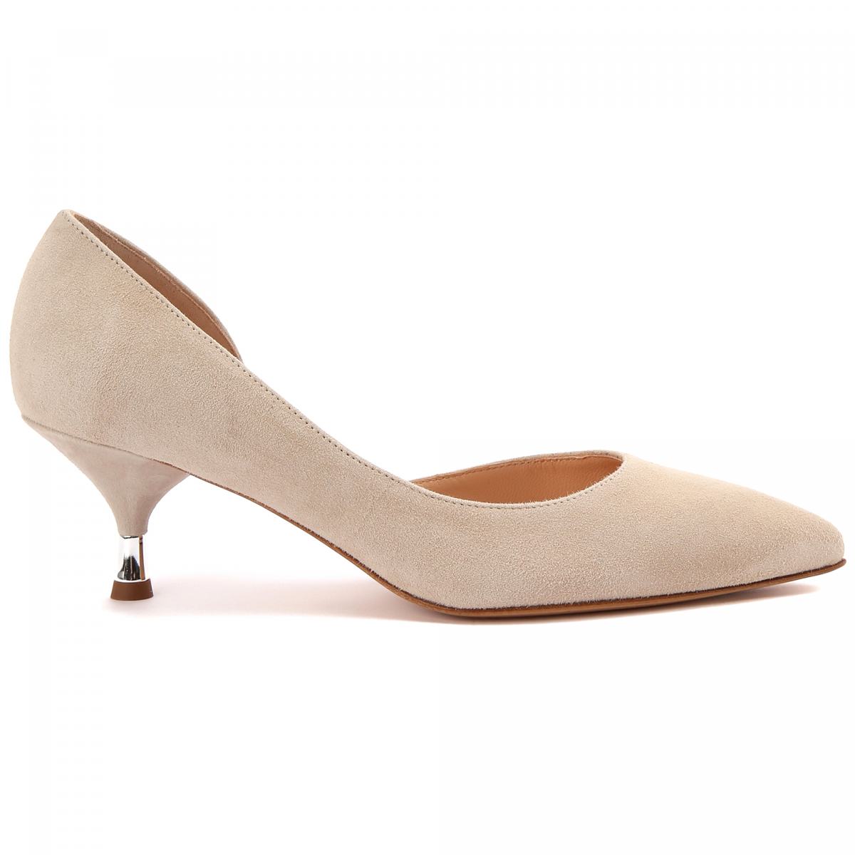 Туфли из натуральной замши от Principe di Bologna. Бежевые туфли с боковым вырезом добавят нотку элегантности в ваши образы. Модель выполнена из натуральной замшевой кожи, на каблуке kitten heel. Внутри подклад и стелька из натуральной кожи. Металлическая вставка на каблуке создаёт оригинальный акцент. Туфли будут уместны как в деловом стиле, так и для образов на особенные мероприятия.