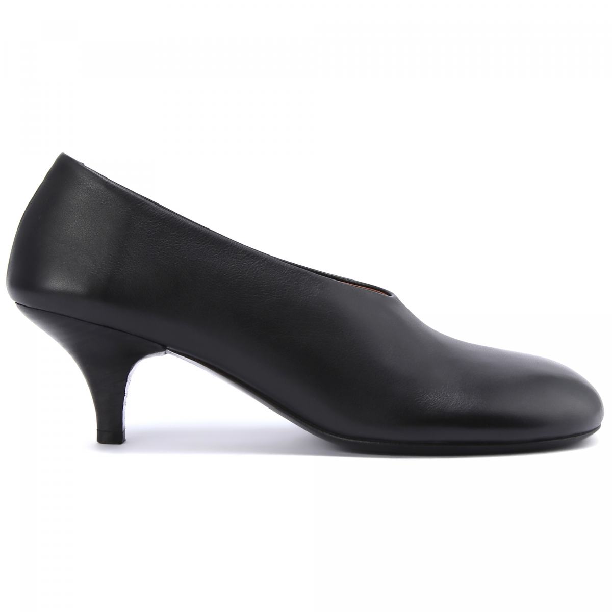 Туфли из натуральной черной кожи от Marsell. Туфли выполнены из гладкой кожи черного цвета, не небольшом каблуке. Идеальный вариант для офиса. Подкладка и стелька выполнены из натуральной кожи. Модель дополнена кожаной подошвой. Высота каблука - 60 мм.
