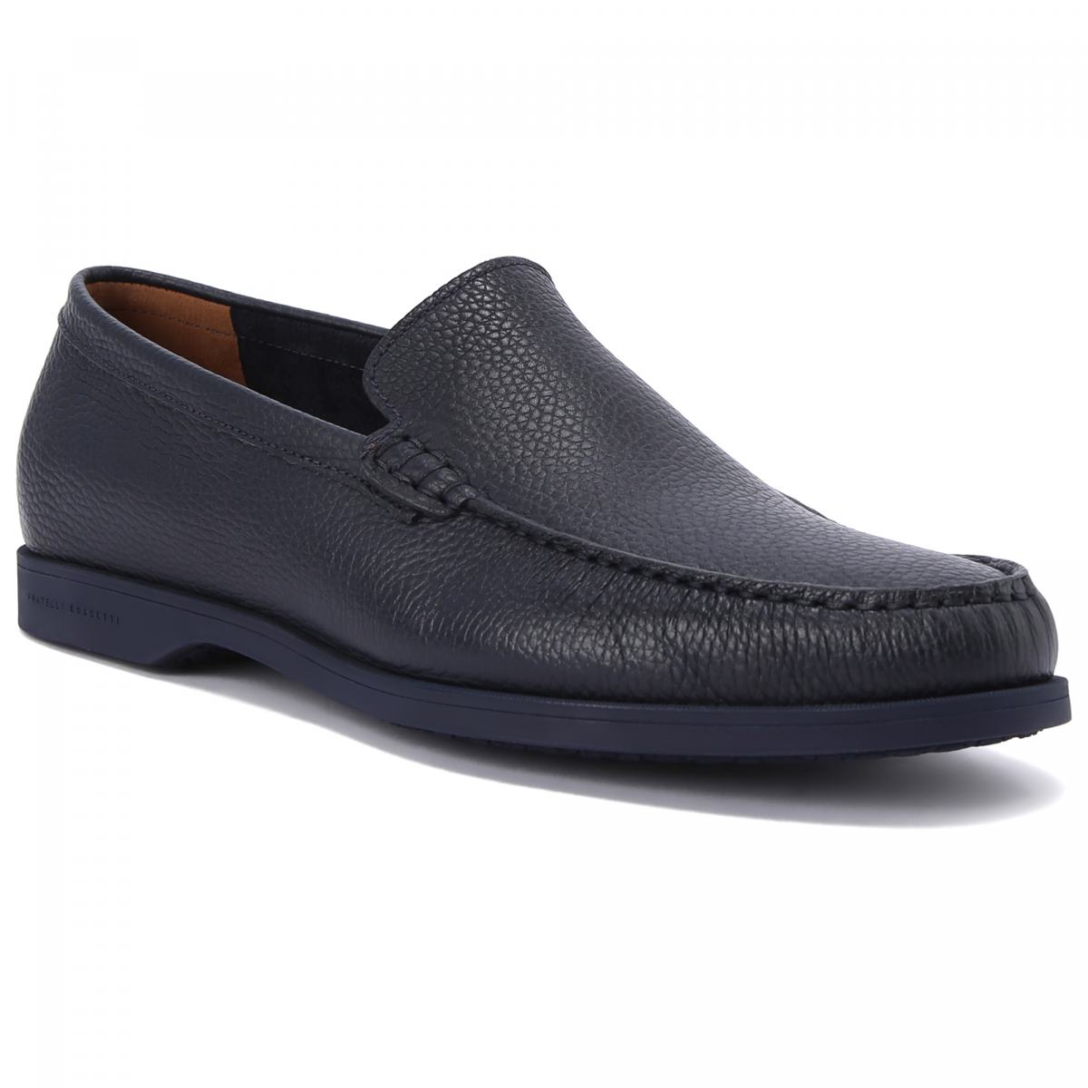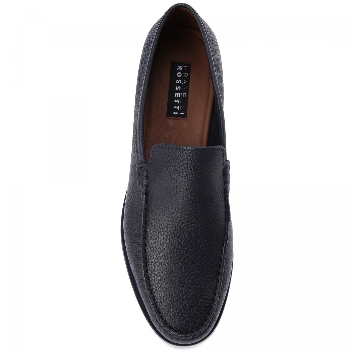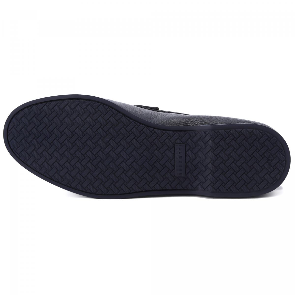 Мокасины с полукруглым мыском из натуральной кожи от Fratelli Rossetti. Модель в непринужденном стиле и базовом тёмно-синем цвете подойдет к любому образу. Легкая резиновая подошва, подкладка и стелька из натуральной кожи.