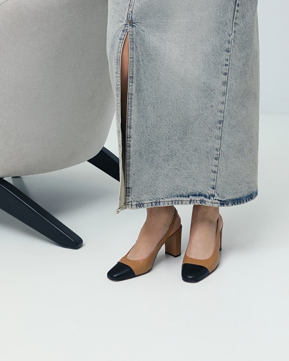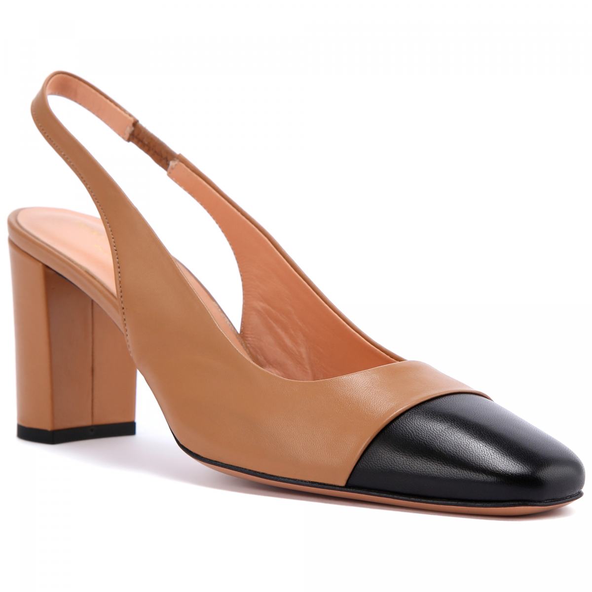 Туфли из натуральной кожи в коричневом цвете от Principe di Bologna. Пара в сдержанном дизайне станет базовым дополнением вашего гардероба. Акцентом дизайна служит контрастный носок черного цвета, придающий модели оригинальный штрих. А благодаря широкому устойчивому каблуку высотой 85 мм. в этой паре можно ходить целый день - идеально для офисного дресс-кода. Модель фиксирует эластичный кожаный ремешок на пятке.