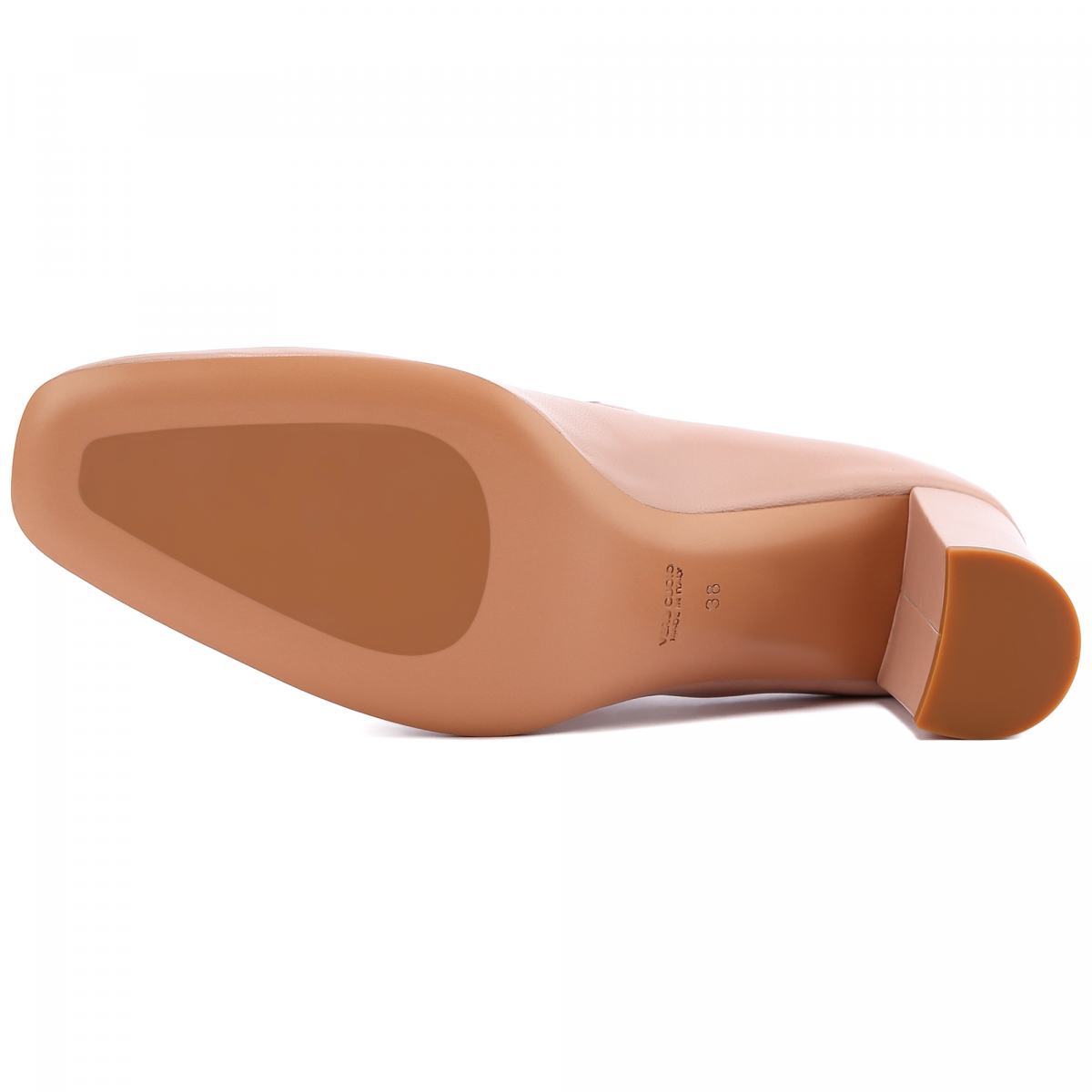 Туфли из натуральной кожи в кремовом цвете от Principe di Bologna. Туфли на устойчивом каблуке — классика для создания сдержанных вечерних или деловых образов. Модель выполнена из натуральной кожи, на каблуке высотой 75 мм. Внутри подклад и стелька также из кожи. Акцентом дизайна служат тонкие ремешки с застежками-пряжками на подъеме. Закругленный мыс и форма каблука создают эффект строгости, поэтому пару можно сочетать как с платьями, так и с костюмами.