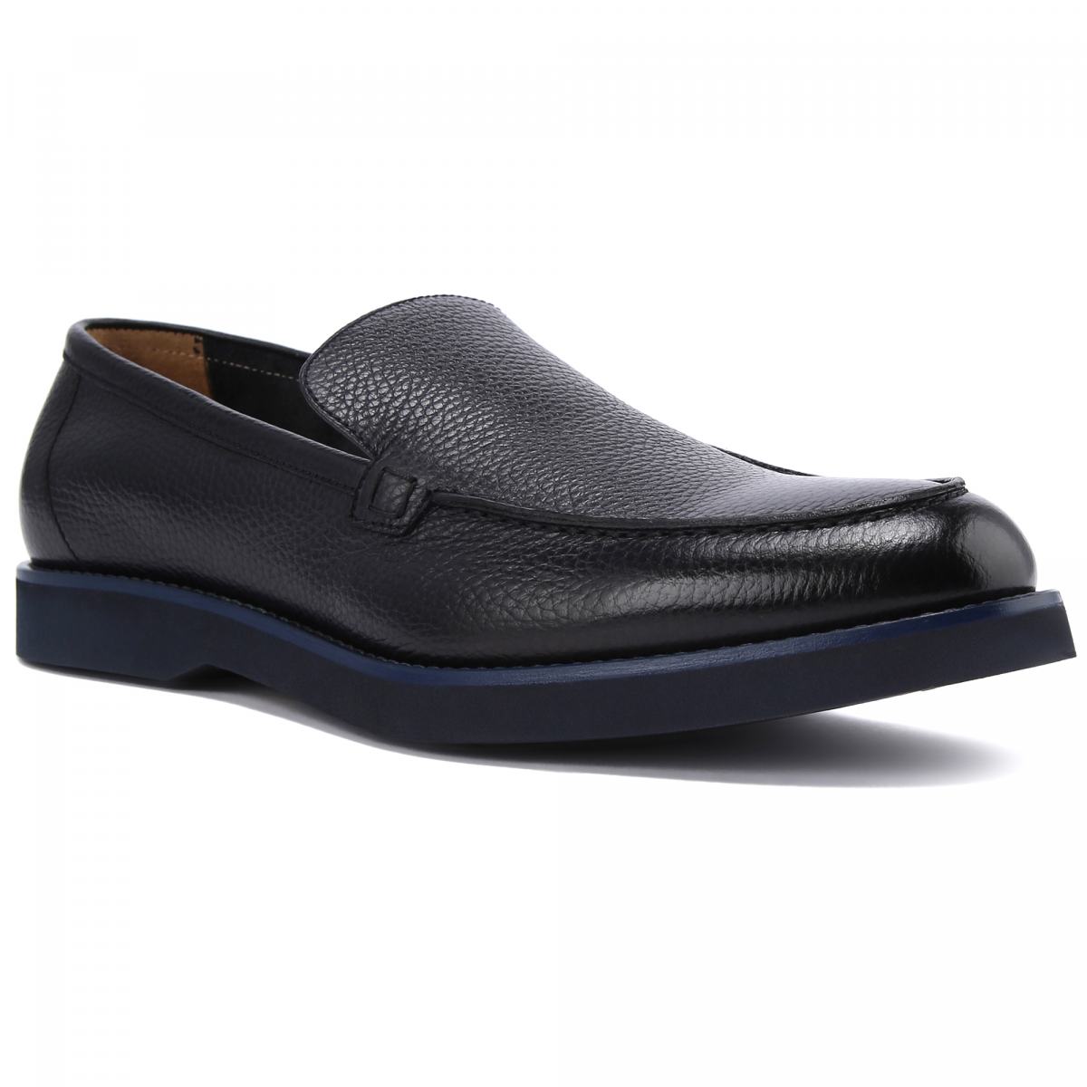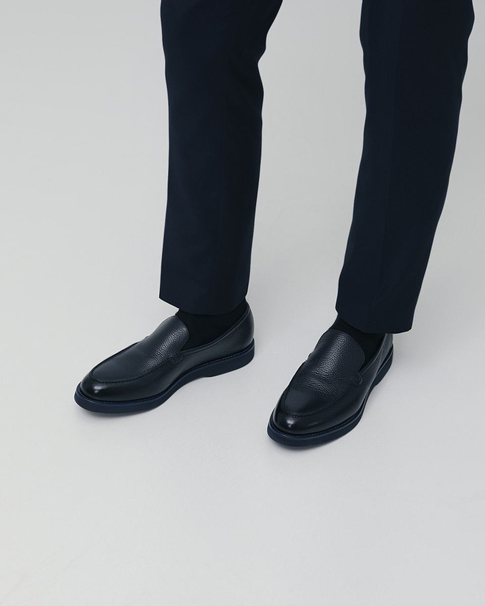 Лоферы из кожи в тёмно-синем цвете от Doucal’s. Лоферы в стиле casual выполнены из мягкой зернистой кожи и украшены рельефным швом. Удобная подошва из резины дарит комфорт в каждом шаге. Стелька и подкладка выполнены из натуральной кожи.