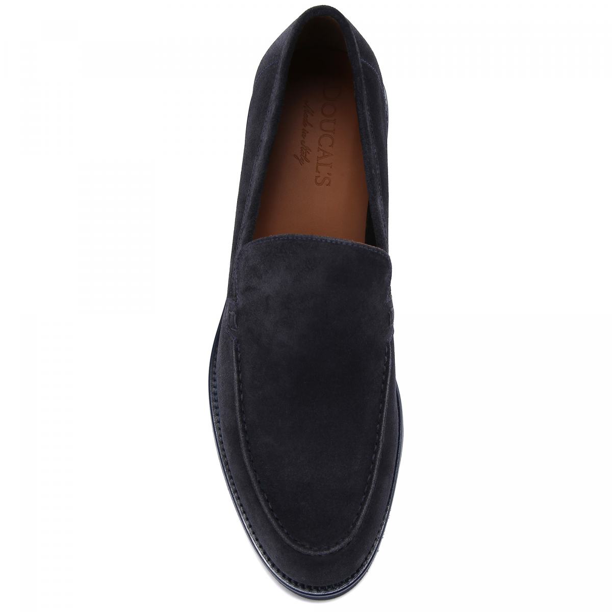 Лоферы из замши в тёмно-синем цвете от Doucal’s. Лоферы в стиле casual выполнены из мягкой замшевой кожи и украшены рельефным швом. Удобная подошва из резины дарит комфорт в каждом шаге. Стелька и подкладка выполнены из натуральной кожи.