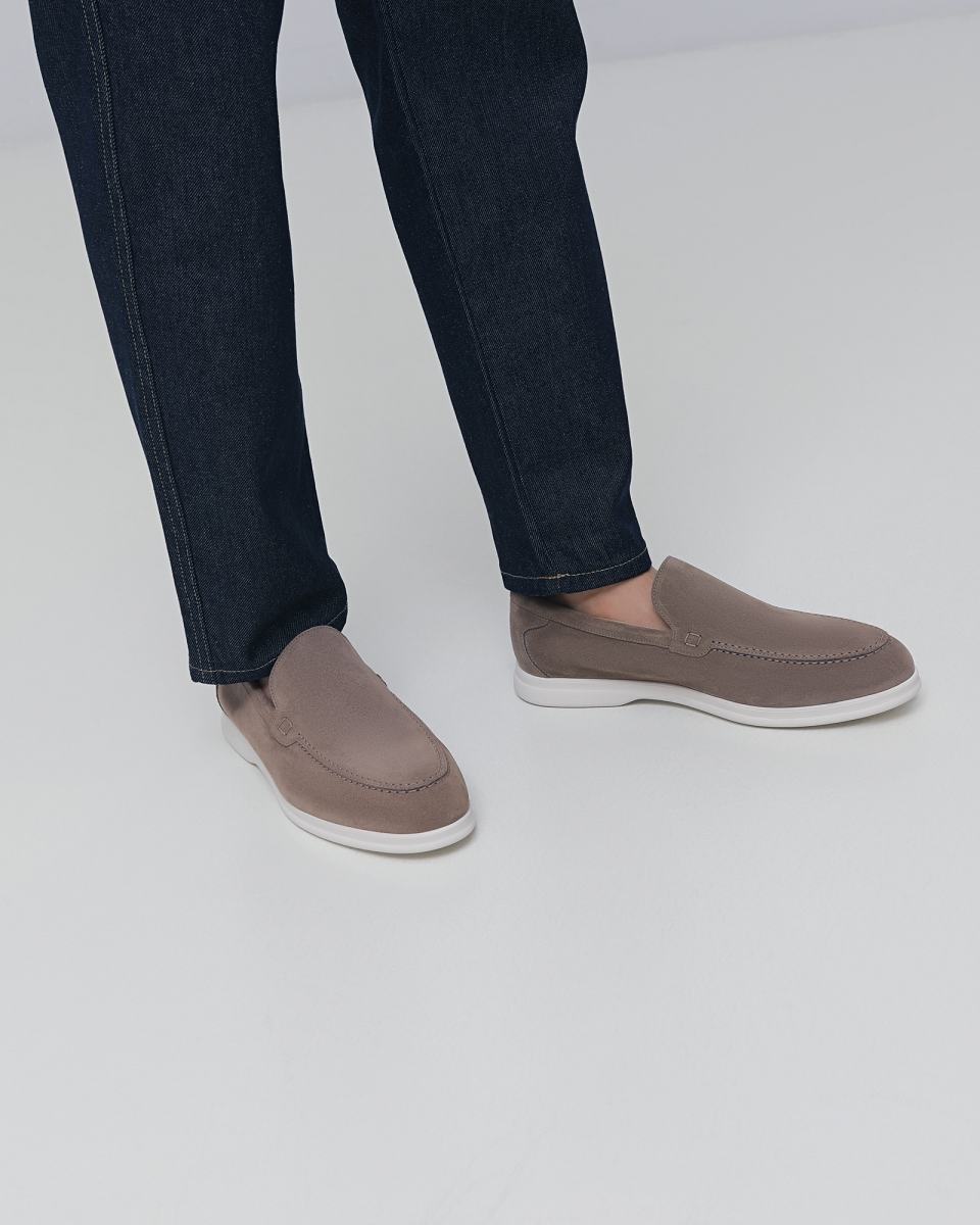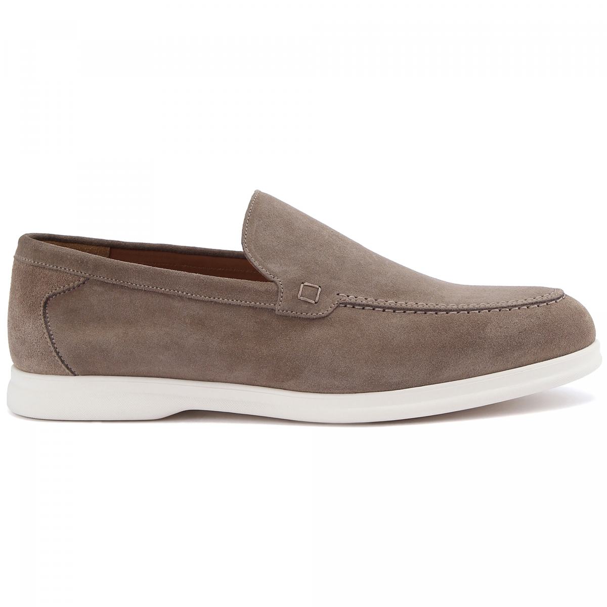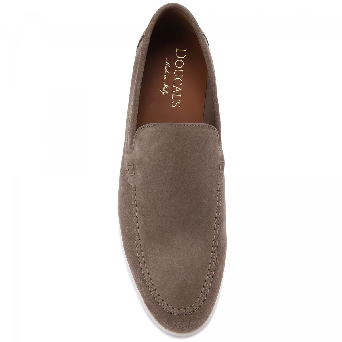 Мокасины из натуральной замши от Doucal’s. Мокасины в тёмно-кремовом цвете идеально впишутся в образы с брюками или шортами. Пара выполнена из мягкой замши. Белая подошва с небольшим каблуком выполнена из резины, а стелька и подкладка - из натуральной кожи. Модель в стиле casual, подходящая как для города, так и для офиса.