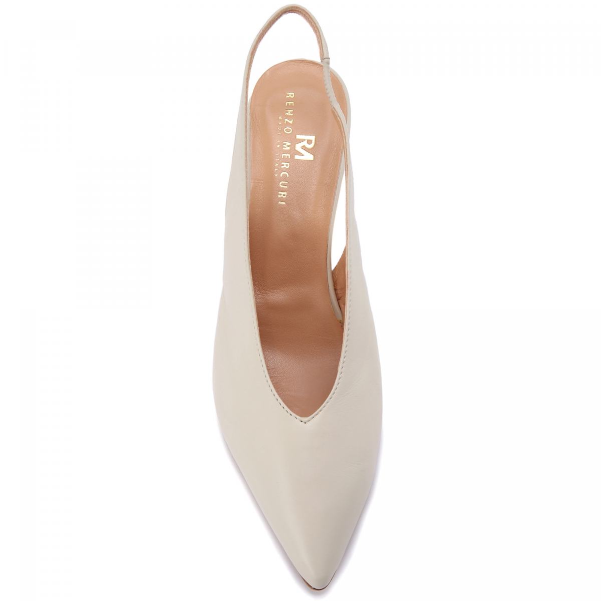 Бежевые туфли с открытой пяткой от Renzo Mercuri подойдут для создания образов в разных стилях. Модель выполнена из натуральной кожи, на каблуке высотой 6 см. Внутри подклад и стелька также из кожи. Стопу фиксирует ремешок на пятке с эластичной вставкой. Лаконичный дизайн позволит сочетать пару как с деловыми костюмами, так и с платьями в романтическом стиле.