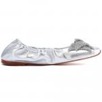 Балетки из натуральной кожи в серебряном цвете от Casadei. Эти балетки из ламинированной кожи наппа серебристого цвета с полуквадратным носком — идеальная обувь, сочетающая комфорт и элегантность. Пара украшена металлическим вязаным бантом с крошечными встроенными стразами, напоминающим бабочку. Удобные и подходящие для любого случая, балетки стали иконой стиля. Резиновая подошва, стелька из натуральной кожи.