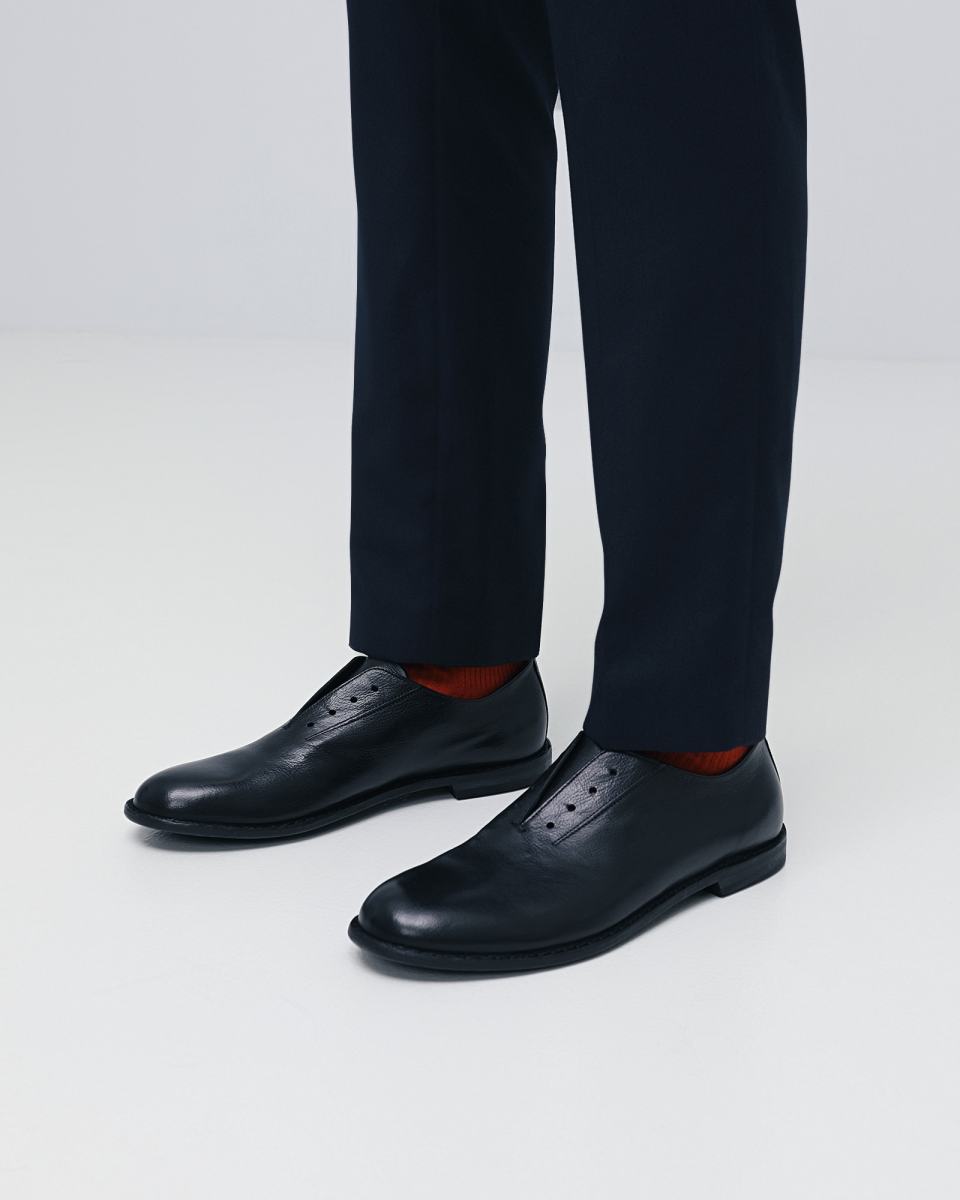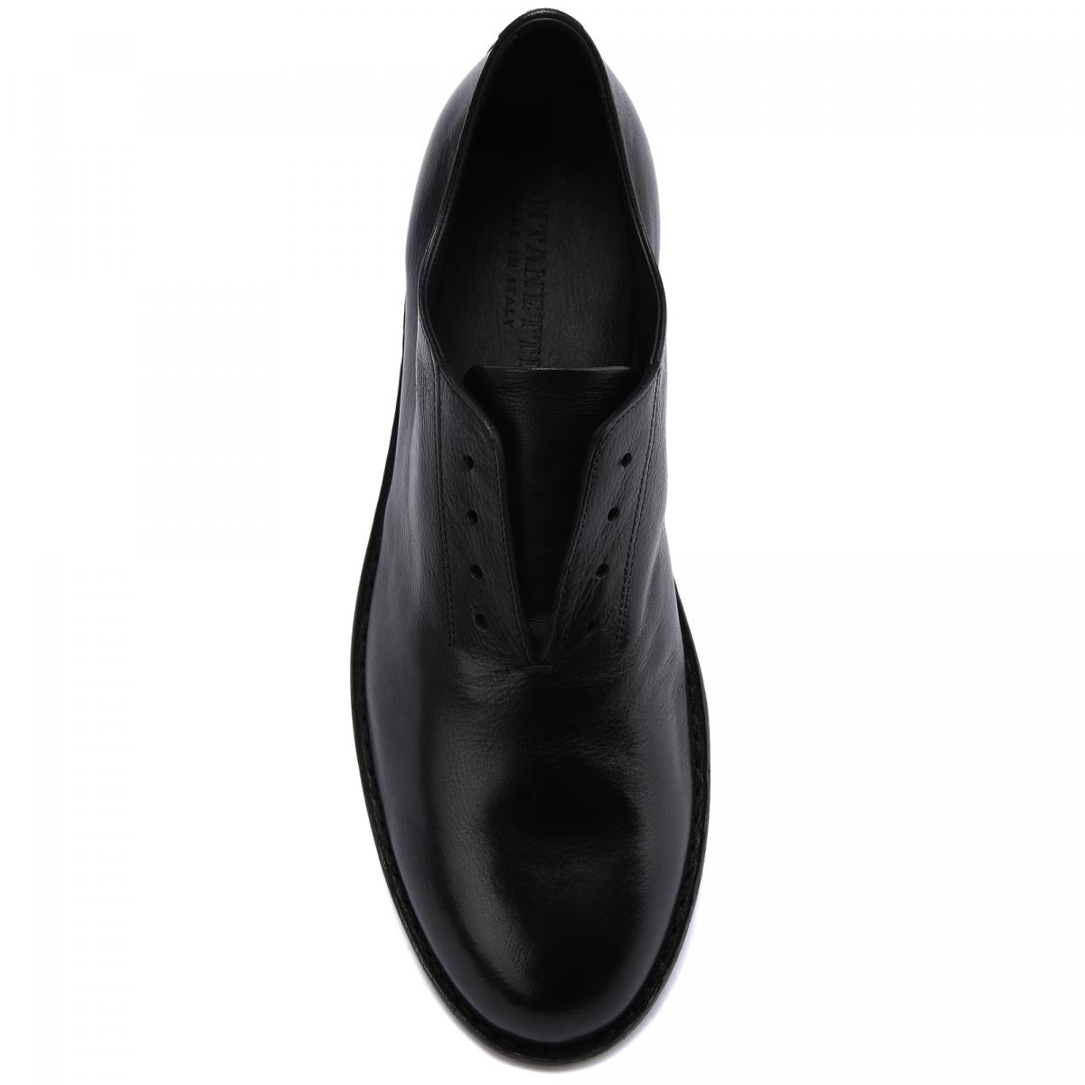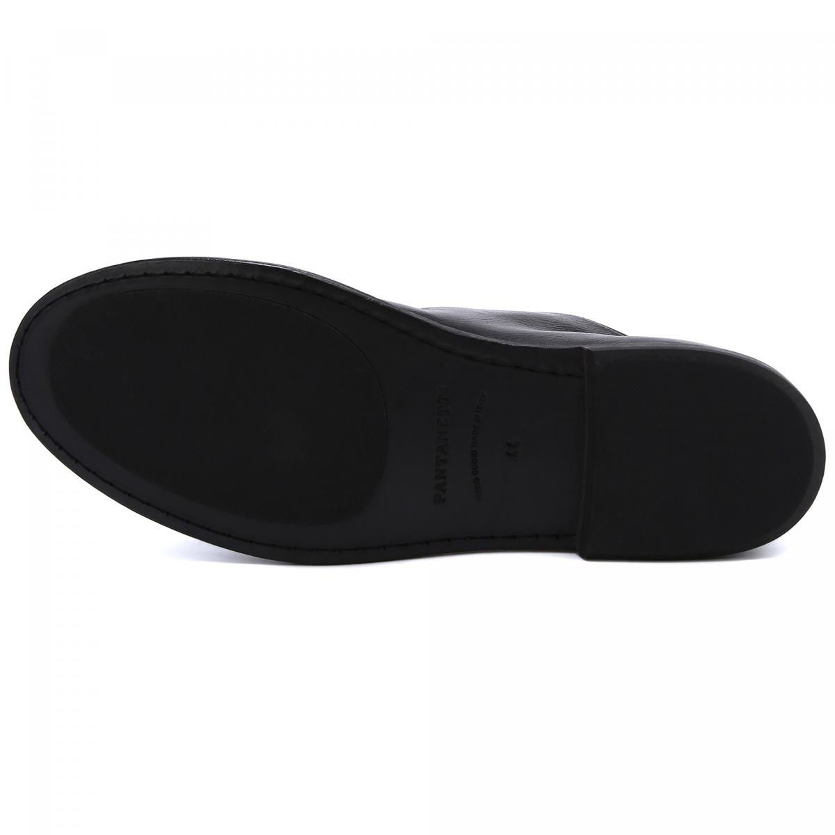 Чёрные туфли в стиле casual от Pantanetti дополнят множество образов. Модель выполнена из натуральной кожи, на кожаной подошве. Внутри подклад и стелька также из кожи. Отсутствие шнуровки подчеркнет расслабленное настроение образа, но не помешает чувствовать себя комфортно во время ходьбы. Туфли легко сочетать как с классическими брюками, так и с повседневными вариантами.