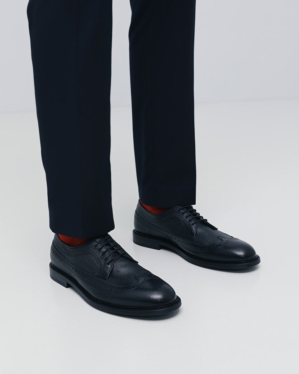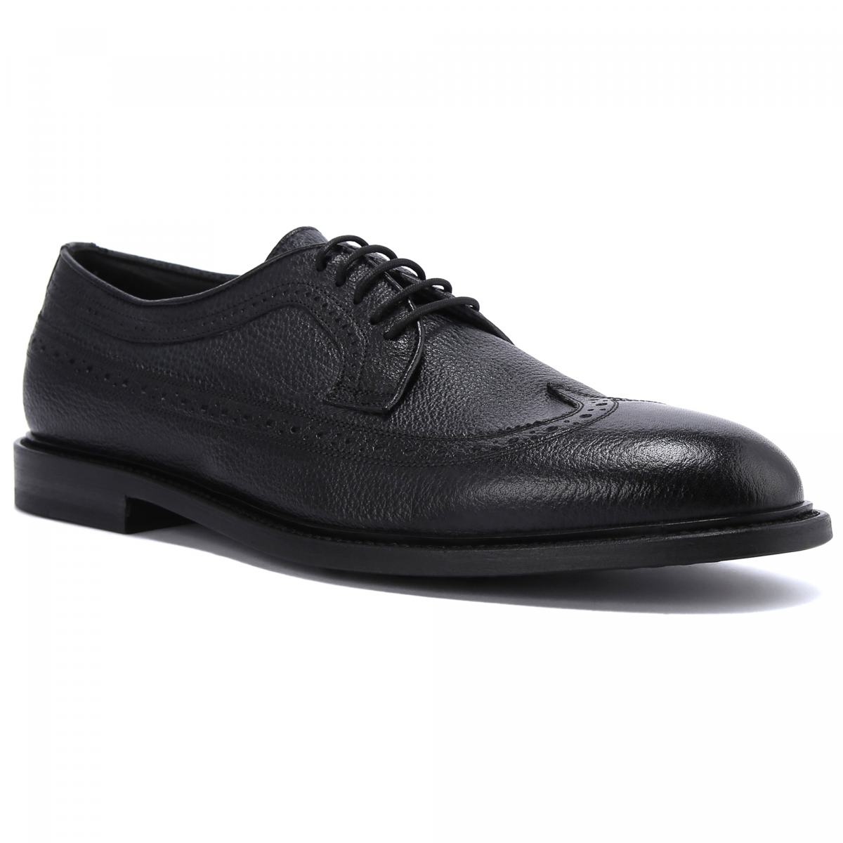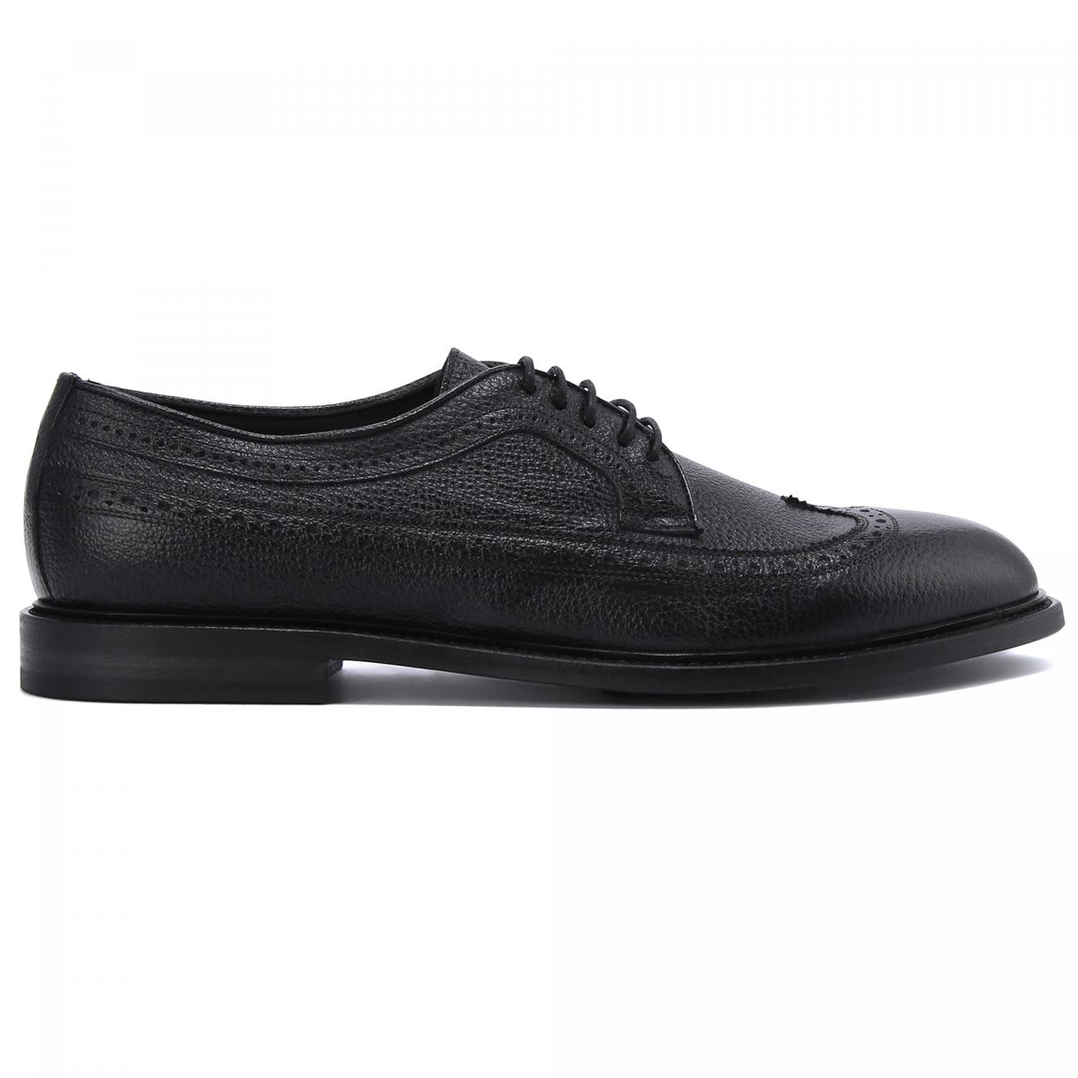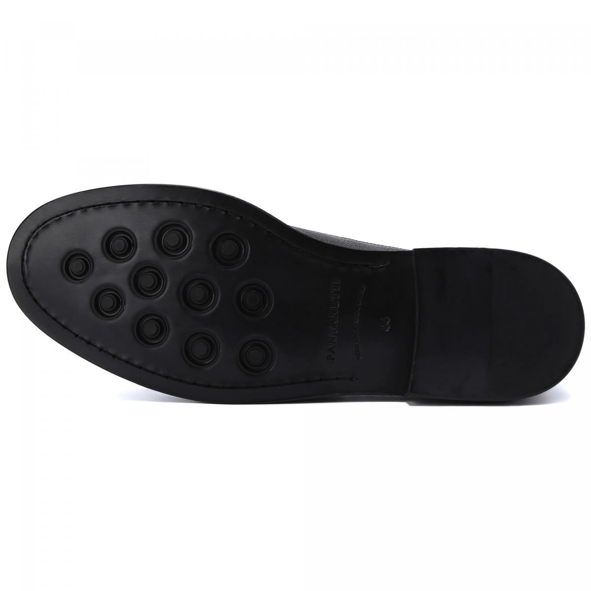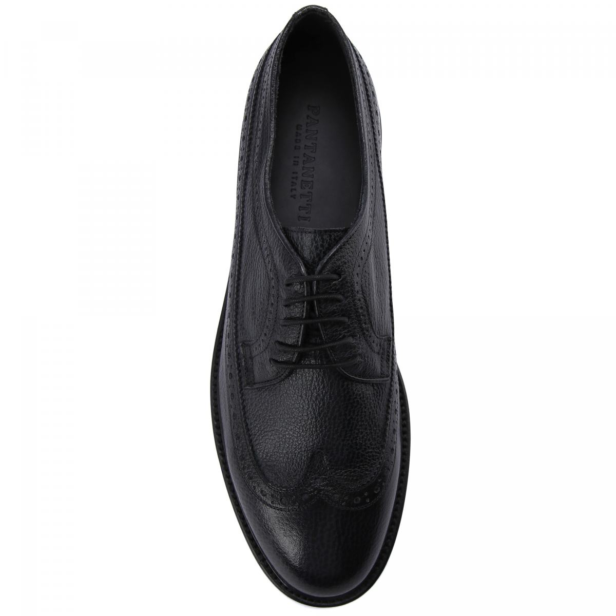Черные туфли с декоративной перфорацией от Pantanetti подчеркнут ваш индивидуальный стиль. Модель выполнена из натуральной крупнозернистой кожи, на которой менее заметны следы повседневной носки. Внутри подклад и стелька также из кожи, подошва — из резины. Такая пара будет уместно смотреться как со строгими брюками, так и с более расслабленными вариантами, в том числе с джинсами.