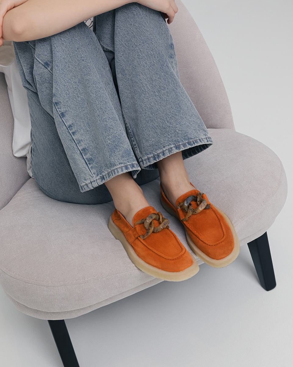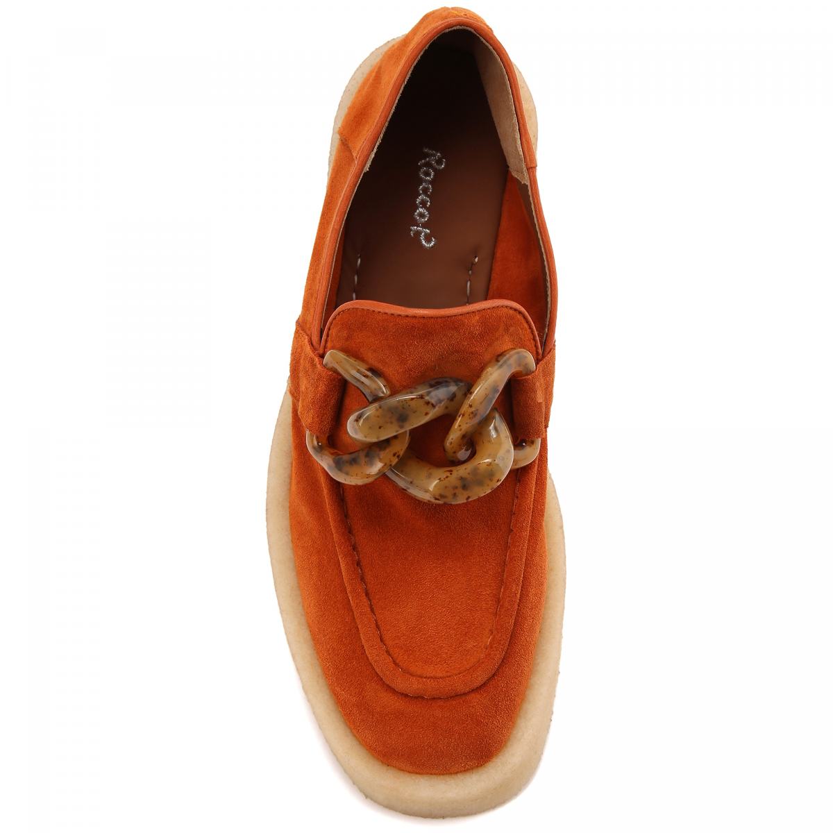 Мягкие туфли из кожи в коричневом цвете от Rocco P. Модель из новой летней коллекции бренда создана специально для долгих прогулок. Верх выполнен из натуральной очень мягкой кожи и дополнен декором в виде макси-цепочки. Подкладка и стелька выполнены из натуральной кожи, а гибкая подошва - из резины. Комфорт в каждом шаге - это новая летняя коллекция бренда Rocco P.