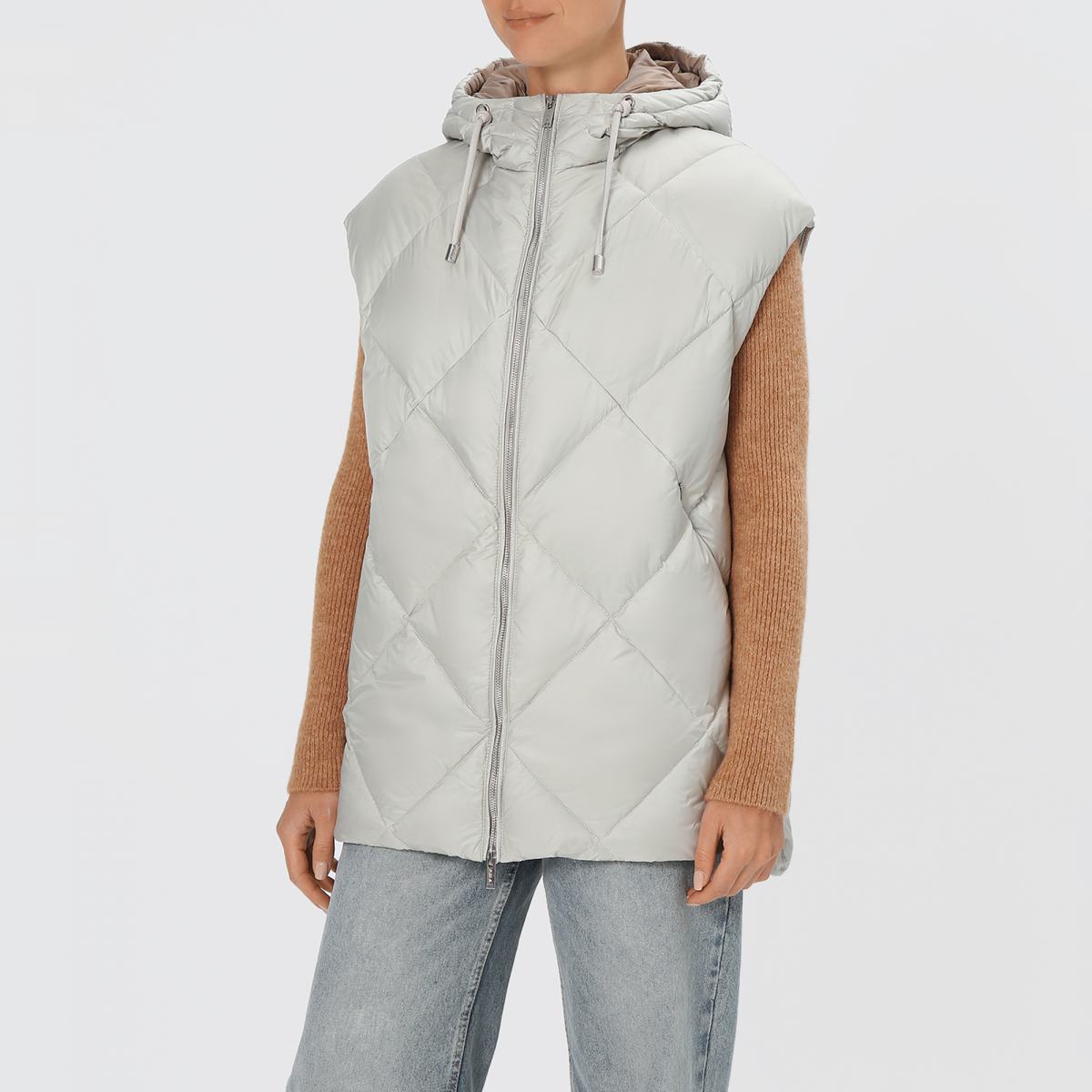 Серый стёганый жилет от Principe di Bologna станет дополнительным слоем или стильным элементом образа. Модель выполнена из акрила и утеплена гусиным пухом. Жилет застёгивается на молнию и дополнен кнопками по бокам, а также капюшоном. Длина до середины бедра позволит легко сочетать жилет с длинными свитшотами или джемперами.
