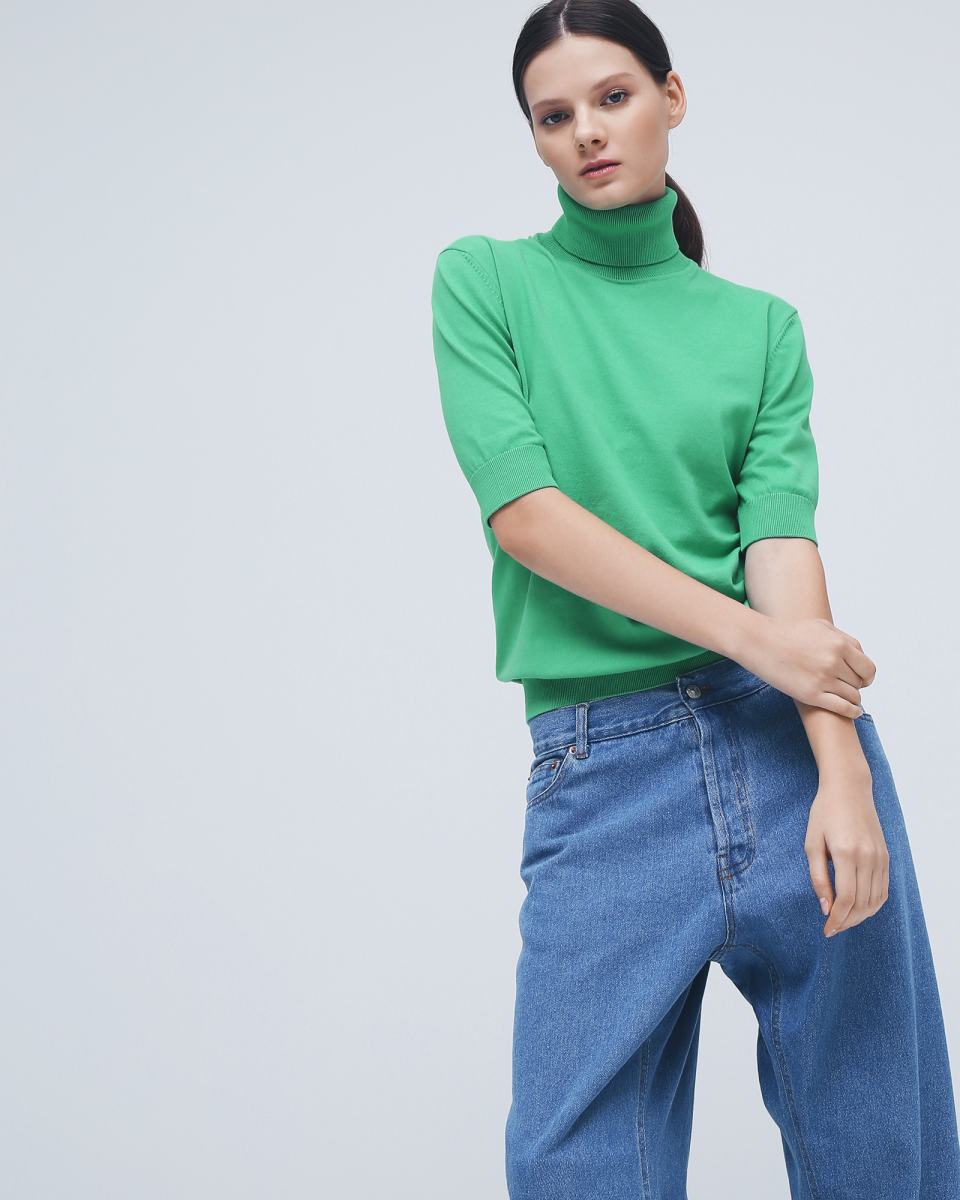 Водолазка с короткими рукавами в зеленом цвете от Principe di Bologna идеально подойдет для многослойных образов. Модель выполнена из трикотажа, в составе которого хлопок и полиамид. Длина позволит носить водолазку как в заправленном виде, так и навыпуск.