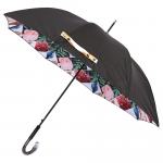 Зонт-трость от итальянского бренда Baldinini. Зонт выполнен из чёрной ткани с яркой принтованной подкладкой. Под строгим куполом Вас ждёт яркий цветочный принт. Модель дополняет полупрозрачная ручка чёрного цвета и длинная шпилька сверху. В сложенном виде зонт закрывается на кнопку. Изысканная модель, поднимающая настроение даже в самый хмурый день! Длина зонта - 88 см.